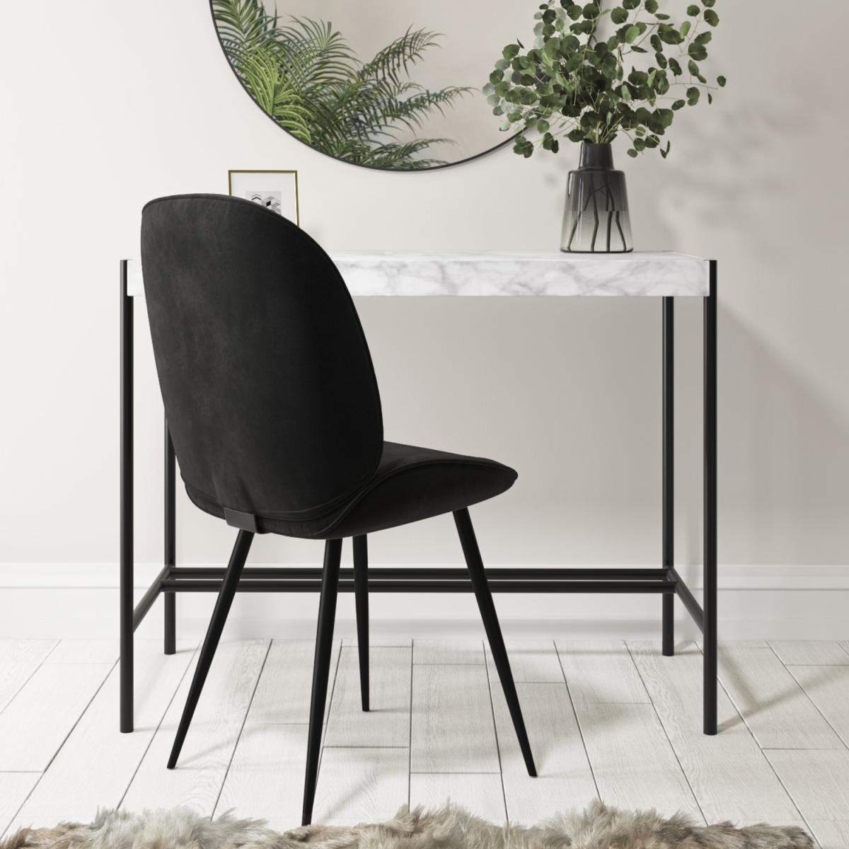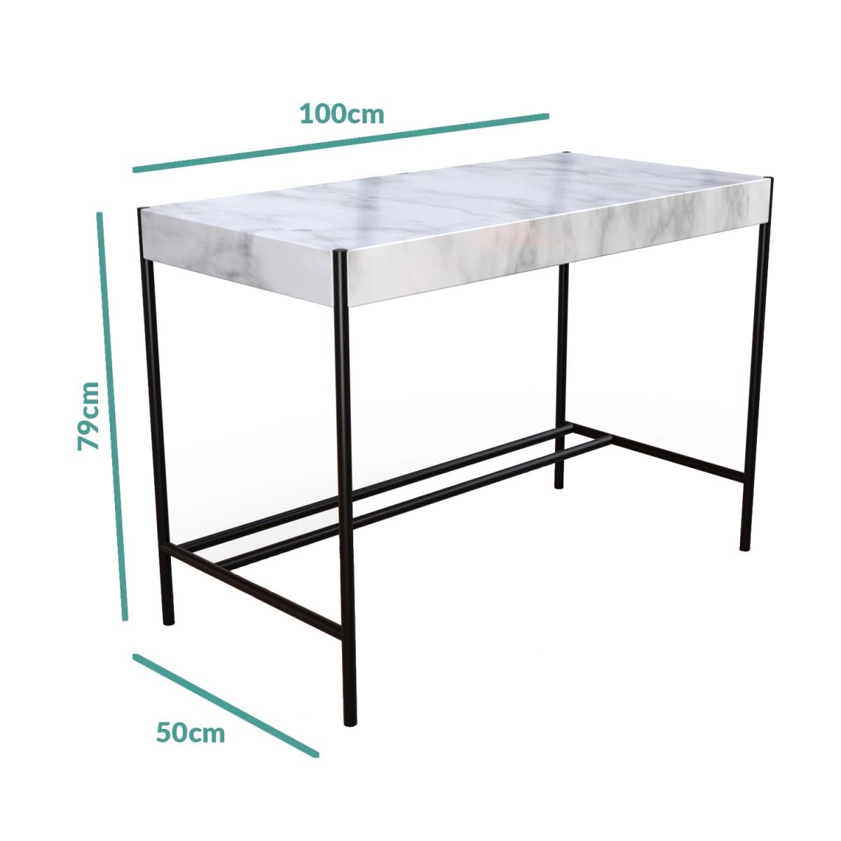 Create a stylish spot to get yourself ready with this striking Roxy desk. Rest you essentials or display a trendy mirror, and it'll look as chic as ever. The elegant white faux marble tabletop resting atop the sleek black frame is instantly striking; it's sure to complement a wide range of décor. It makes a versatile addition to any modern home or salon used as a table or even a makeup table in the beauty room. A little self-assembly is required; there are just the legs to secure in place..