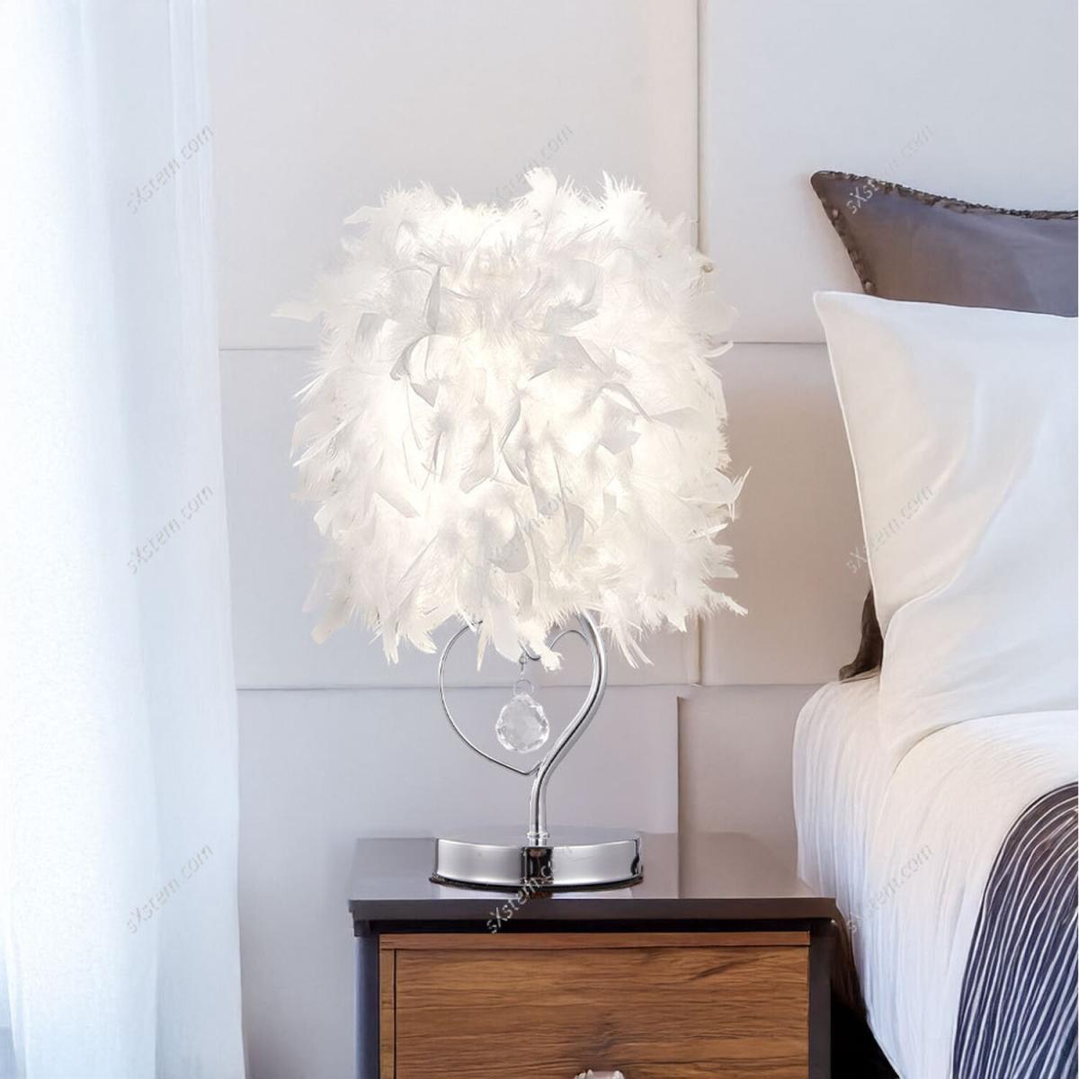 Selecting our bedside lamp is an excellent choice to elevate the ambiance of your home. The arched stand, featuring a heart-shaped design and adorned with a crystal bead, creates a striking contrast with the soft, white goose feathers. Whether it's lit or not, this lamp is a true embodiment of beauty. Its balanced design takes up minimal space, making it ideal for the corner of your dressing table.