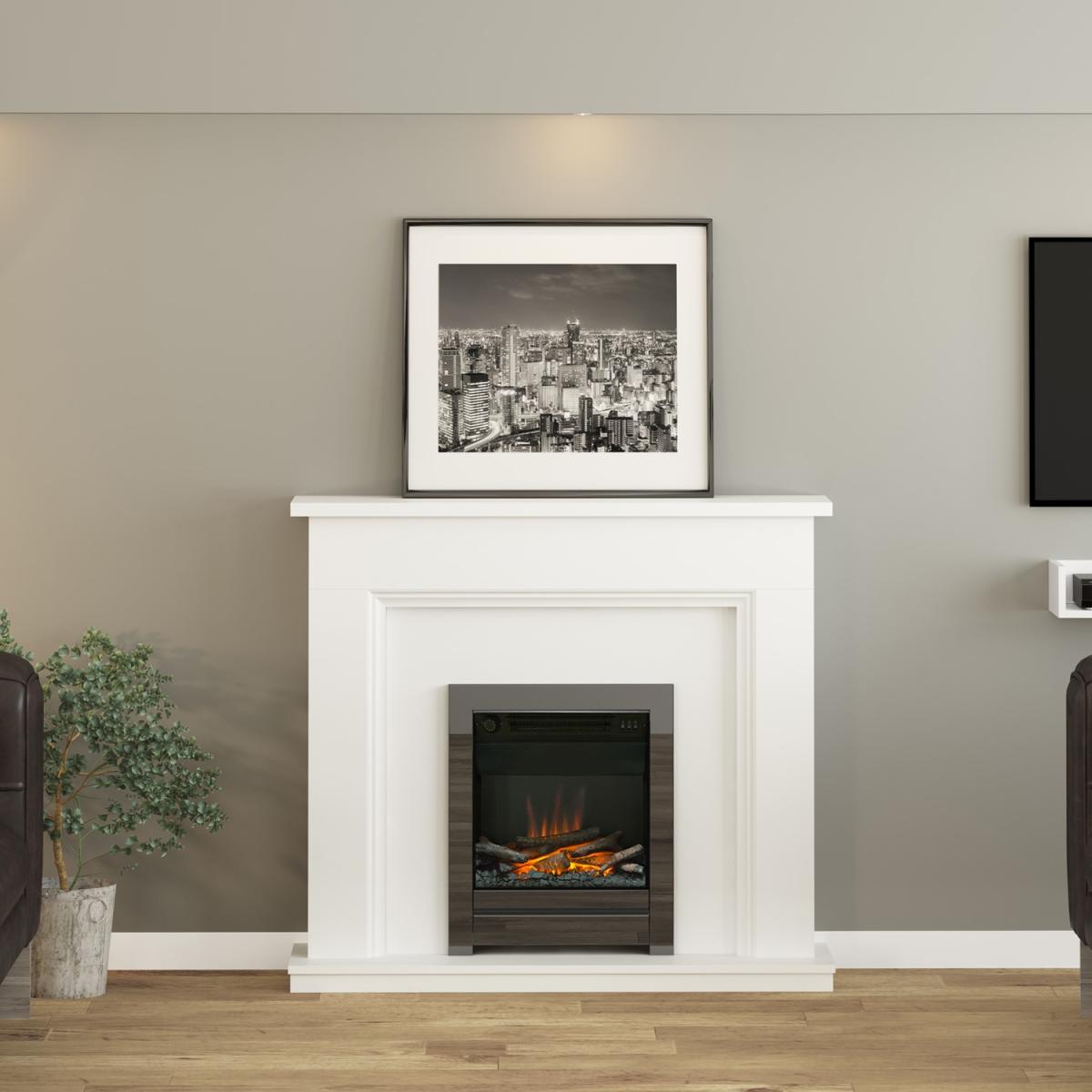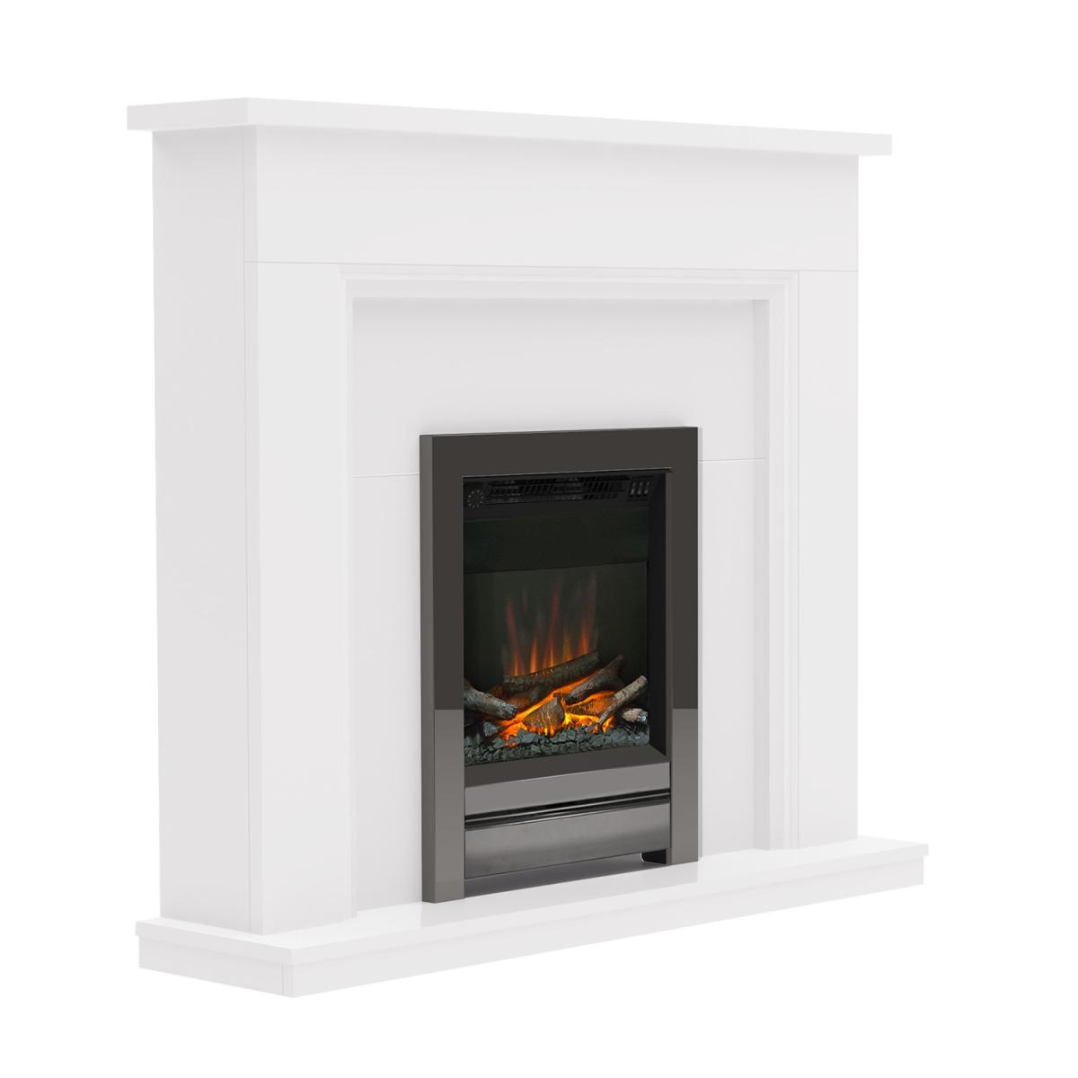 The Flare By Be Modern 48'' Lansing electric suite has a stunning painted white timber mantel and contrasting black nickel fire trim. Featuring a realistic glowing log bed and latest flame technology. Its clean lines are great for a minimalistic look, which is easy to style into any interior.
