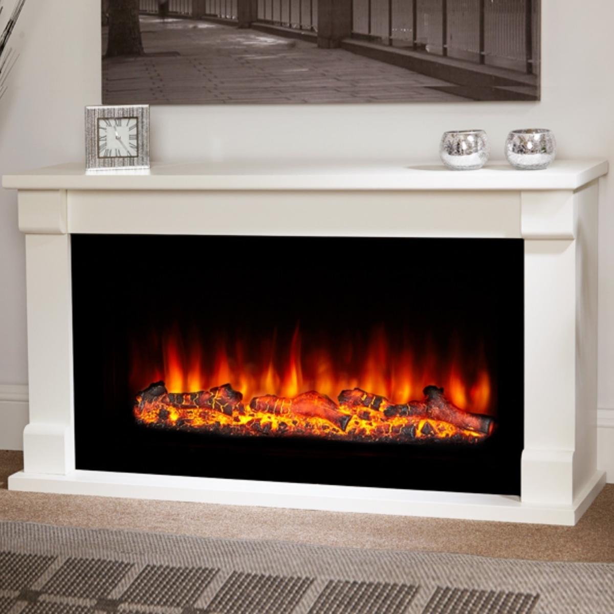White Freestanding Wide Electric Fireplace Suite - Suncrest Bradbury
