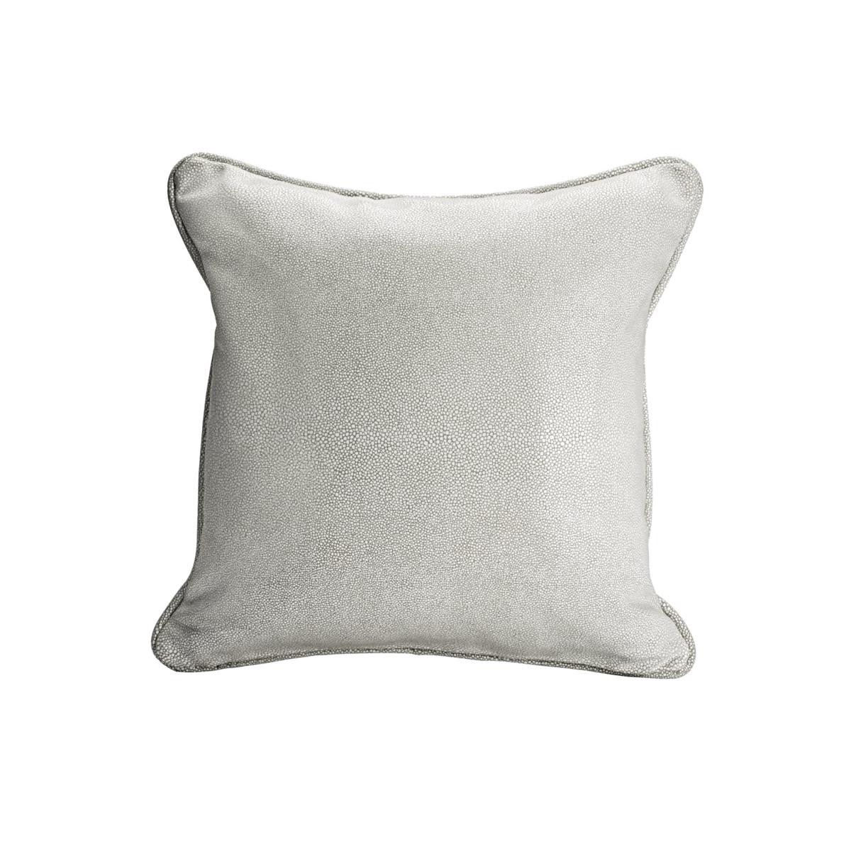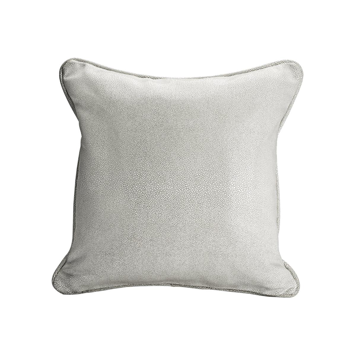 Traditionally made from stingray or shark skin, shagreen is a precious material known for its polished, dappled finish. It’s normally used as a hard surface on furniture and storage boxes, but we wanted to adapt it for soft furnishings. This cushion is made by heat-embossing suede with a glossy relief pattern, creating a supple material with a luxurious mix of matt and glossy textures. The edges are piped in the same finish. This cushion is covered in embossed suede on both sides, so it’s fully reversible. Size: 40X40cm . Colour:Cream Material:Embossed Suede Your shipping cost and any customs or duties charges will be added to your order at checkout. Please add your items to the basket and complete your delivery information for details of your shipping charges.