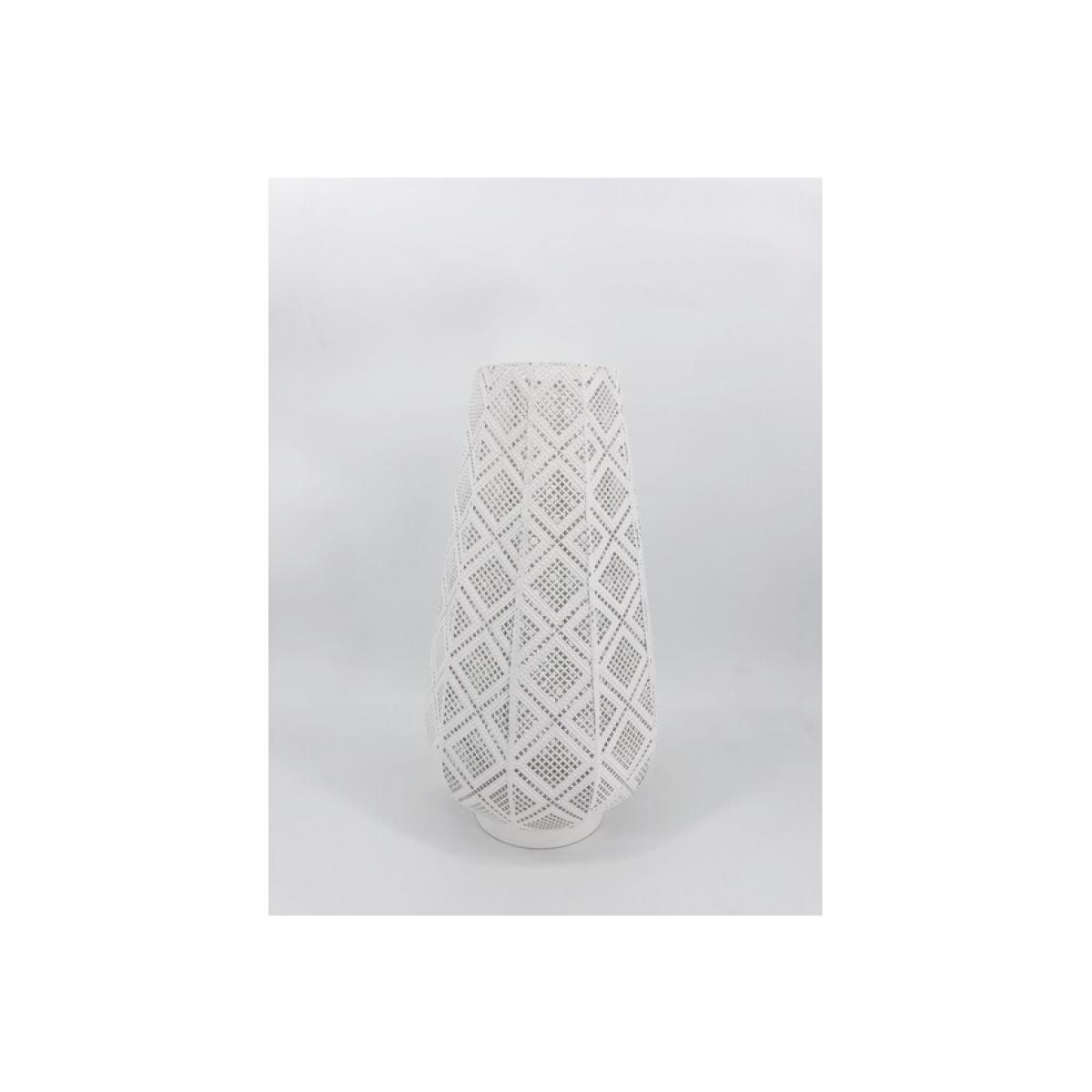 Arty and quirky in design, the White Geometric Caged Table Lamp will bring a highly decorative edge to your bedroom or home office. Coloured a pure white for a contemporary touch, the cut-out cage means that when turned on, the light will stream out and create interesting patterns across your wall.