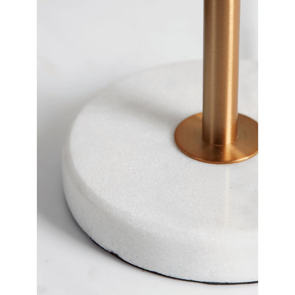 I love this white glass and marble lamp for its clean, minimalist aesthetic that adds a touch of sophistication to various interiors. It works particularly well in modern or contemporary spaces, especially those with neutral palettes or mixed metallic accents. Practical styling tips include placing it on a bedside table, console, or sideboard to provide soft ambient light without overpowering the room. To enhance its elegance, pair it with subtle accessories like a marble tray or metallic finishes. Its understated design is versatile enough to slot into living rooms, bedrooms, or even a stylish home office, making it a reliable statement piece that elevates the overall decor.