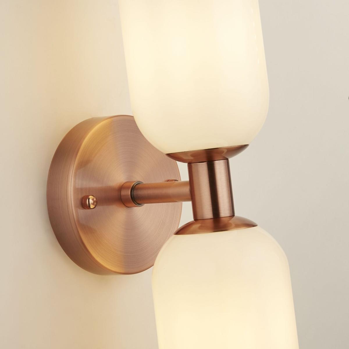 I love this wall light for its sleek, modern appeal and versatility. Its clean white glass finish ensures it seamlessly blends into various interiors, from contemporary and minimalist spaces to more eclectic settings. It works particularly well in bedrooms, hallways, or living rooms where subtle, warm lighting is ideal. For styling tips, consider pairing it with brass or rose gold accents to enhance the copper detail or use it to highlight architectural features. Practicality-wise, it’s perfect for zones where a softer, diffused light is needed without overwhelming the space, making it a smart choice for both function and aesthetic.