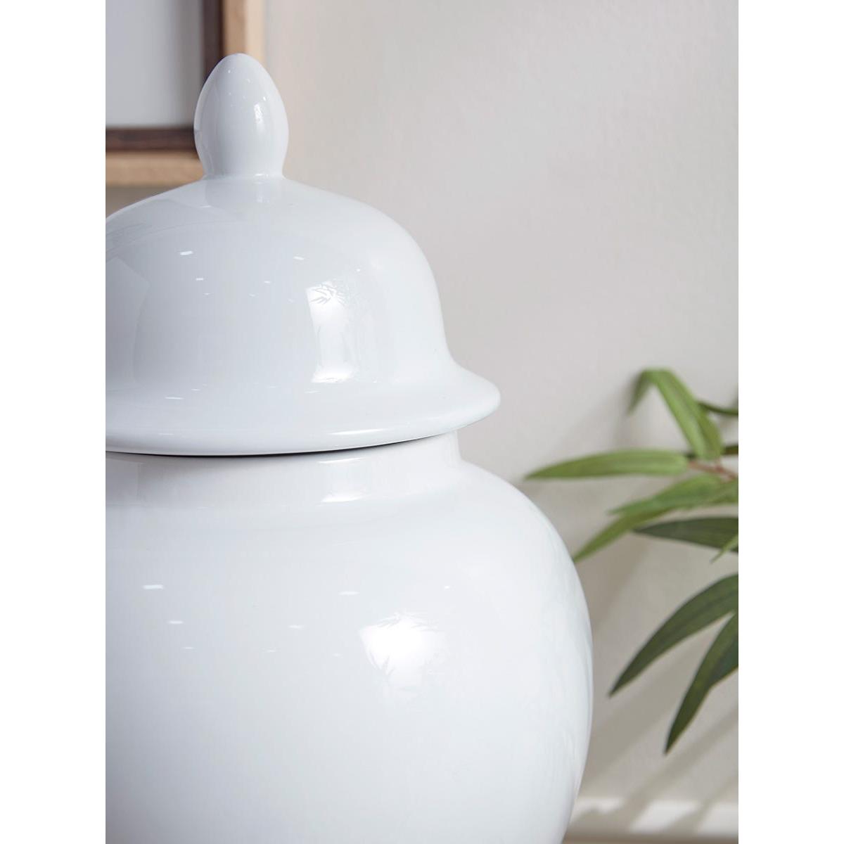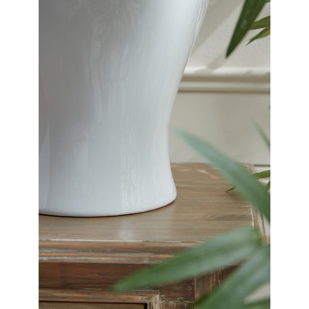 A classic piece that will transform the styling of a console table, our ginger jar features a glossy white glaze and those unmistakable curves, culminating in a smooth domed lid. Perfect as a standalone piece, or teamed with a favourite collection of blue and white china for timeless styling.