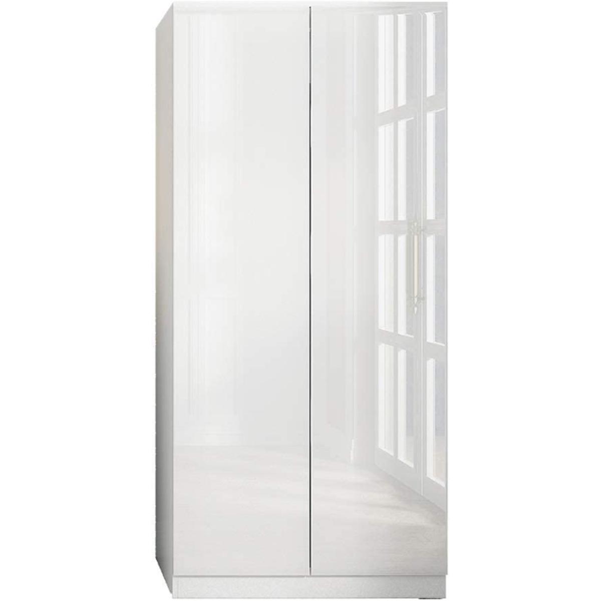 A complete solution to your bedroom storage woes that wonders with its eye-catching style and solidity. This fabulous Narvik piece includes a full-width clothes rail and tonnes of overhead bedding room, a scratch-resistant melamine coating, soft-close hinges and a no-handle push to open mechanism built-in. Keep your home neat, tidy and jazzy with our incredible Scandinavian style Narvik collection. Material: MDF Chipboard Colour: Gloss White Finish: Glossy Door Fronts & Matt Frame Assembly Required:Yes Easy Assembly: Yes Dimensions W 80 x H 180 x D 50cm