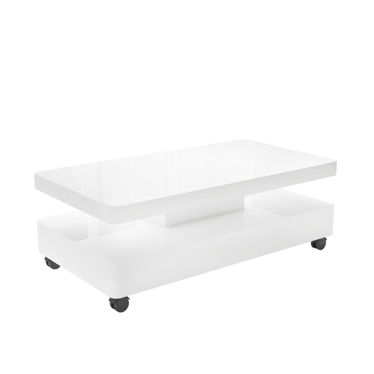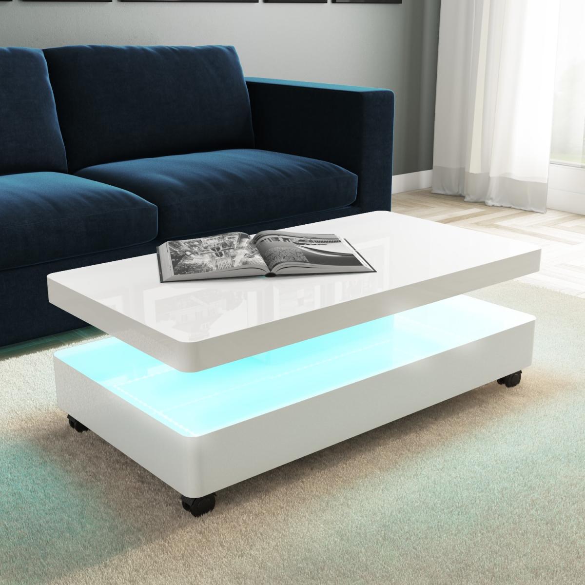 Contemporary coffee table that will make a statement Its unique design creates an instant focal point Comes with a rechargeable battery pack Completely wireless with remote control included Also available in black gloss to suit your style All About Me The ultra-modern Tiffany LED coffee table will illuminate your space in style. It has customisable lighting effects: flash, strobe, fade, smooth and a variety of different colours to suit your mood, as well as being stylishly finished in a high white gloss that is easy to clean. More info Control the brightness of the colours Colours can be set to static Need to know Colour: White Finish: High gloss Material: Wood Lighting: RGB LED's Assembly required: Yes