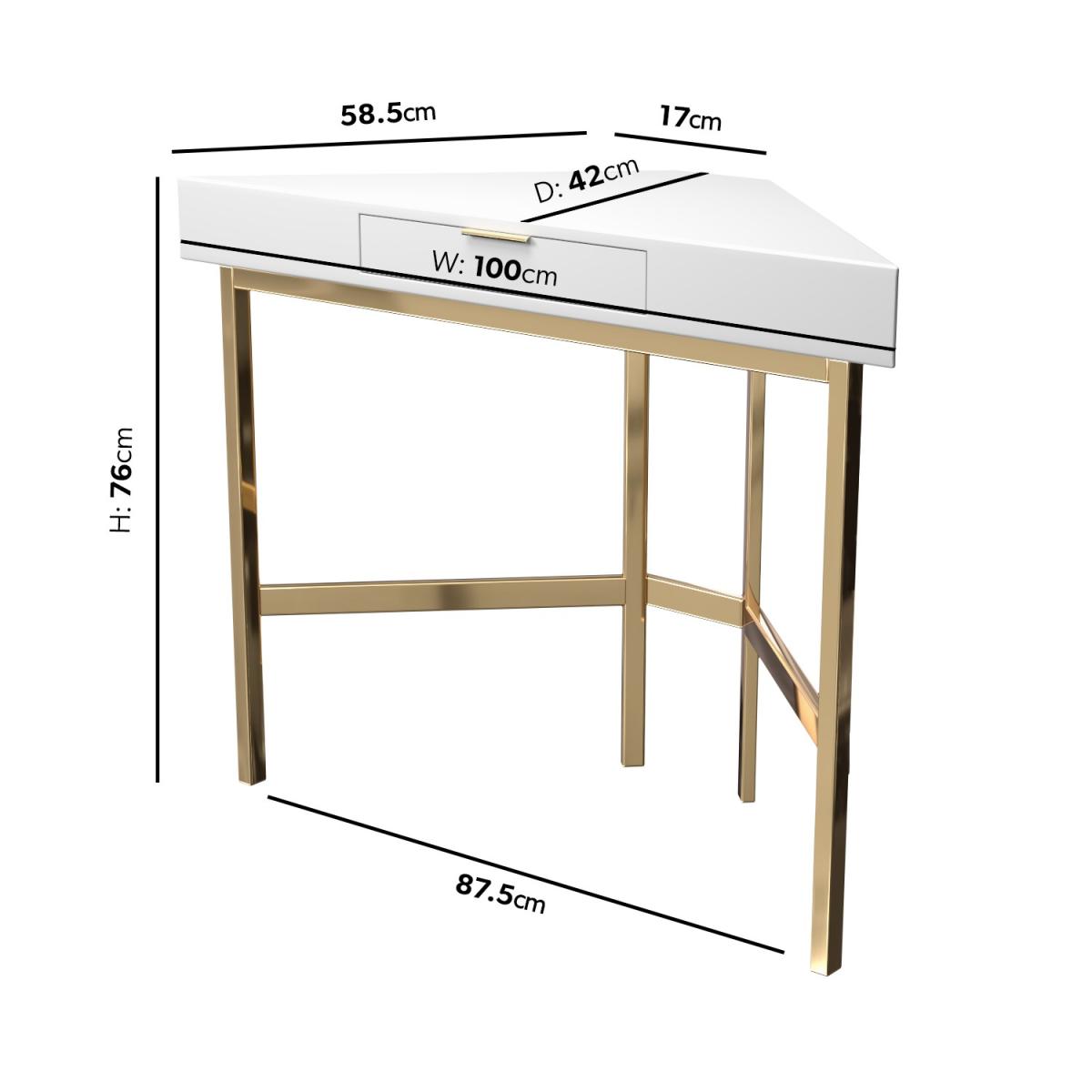 This corner desk and swivel chair combo are practical choices that work well in contemporary or minimalist interiors. The high-gloss white finish of the desk offers a sleek, modern look that reflects light and helps make smaller spaces feel more open. The gold-toned legs add a touch of elegance without being overwhelming, making it versatile enough to slot into both home offices and more stylish workspaces. The grey faux sheepskin swivel chair injects comfort and texture, creating a balanced mix of function and style. To style around this set, consider adding potted plants or colourful desk accessories to soften the look and introduce personality. It works particularly well in light, neutral schemes, but can also be paired with darker tones for contrast. Practicality-wise, keep your accessories minimal and organised for a clutter-free zone that maximises the corner space effectively.