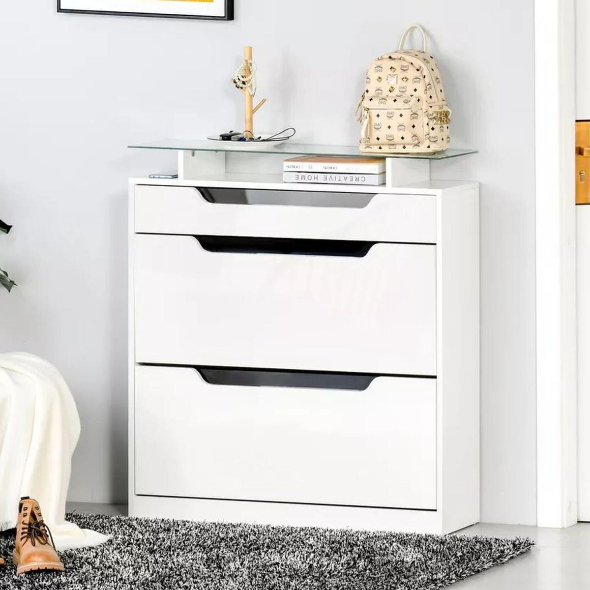 White Gloss Shoe Cabinet with 3 Drawers, - White