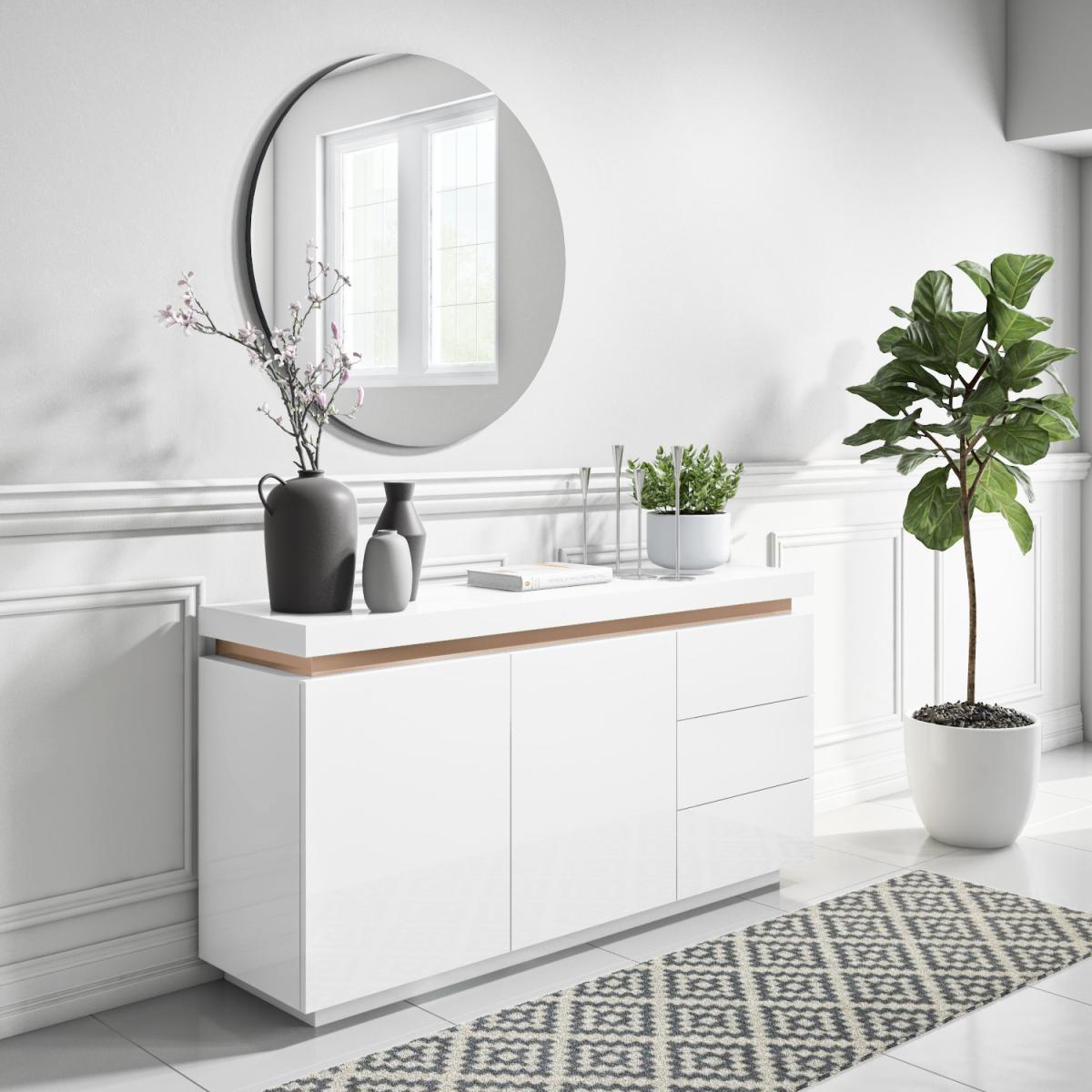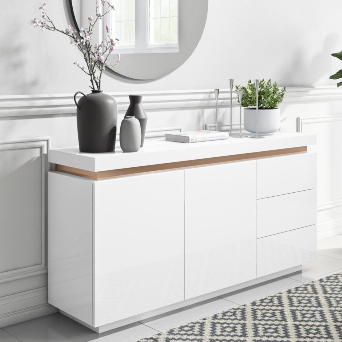 White Gloss Sideboard with Brass Inlay - Vivienne
