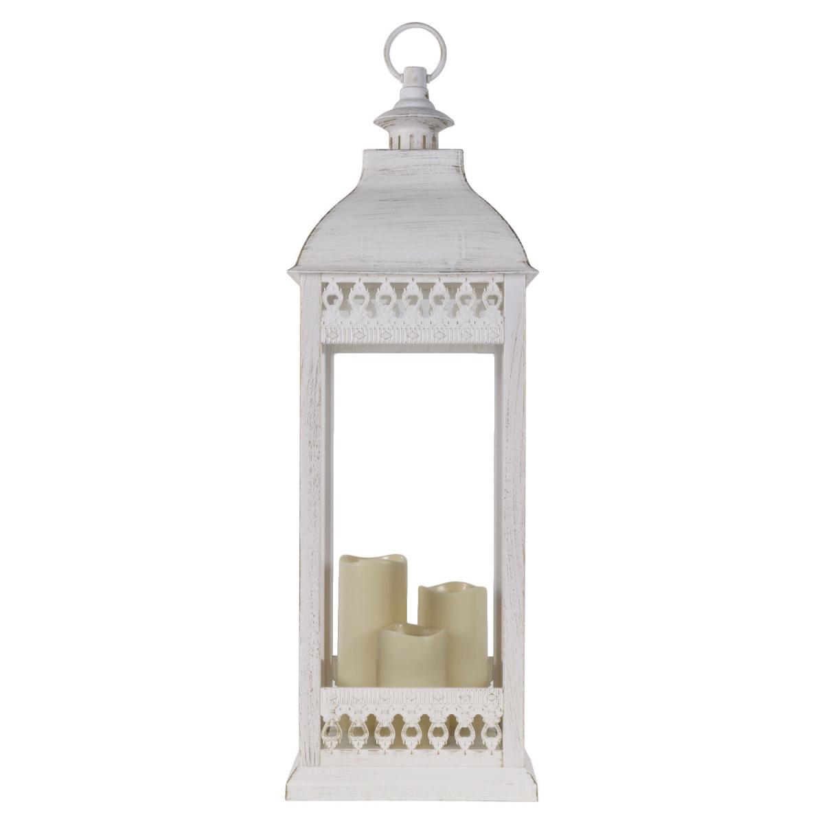 Create a warm and cosy atmosphere anywhere in your home with this gorgeous White Gold Brushed LED Lantern. The perfect home addition, this charming, vintage-inspired lantern has a lovely white-wash effect for a touch of shabby chic and has been finished with details inspired by wrought-iron Victorian lamps. Featuring LED candles inside to create a beautiful, comfortable ambience around your room, this tall lantern is sure to look stunning on mantelpieces, shelves, accent tables, or even on the floor by your TV.