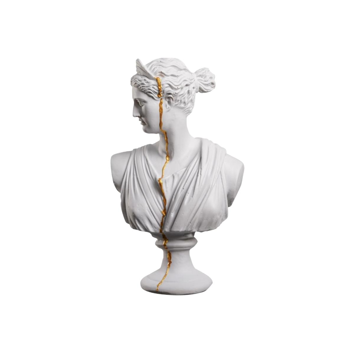 What would you do for love?Artemis, the Ancient Greek goddess of the hunt and chastity, killed her love Orion and then placed him in the sky. This bust reminds us of the pain and beauty in love, reminding us to honor our emotions and look after our loved ones. Created in the likeness of Leochare’s Artemis, this bust draws upon traditional Ancient Greek sculpture. However, there’s a modern twist. Artemis features a delicate golden streak to emphasise her power. This bust is made from high-quality plaster to last a lifetime.