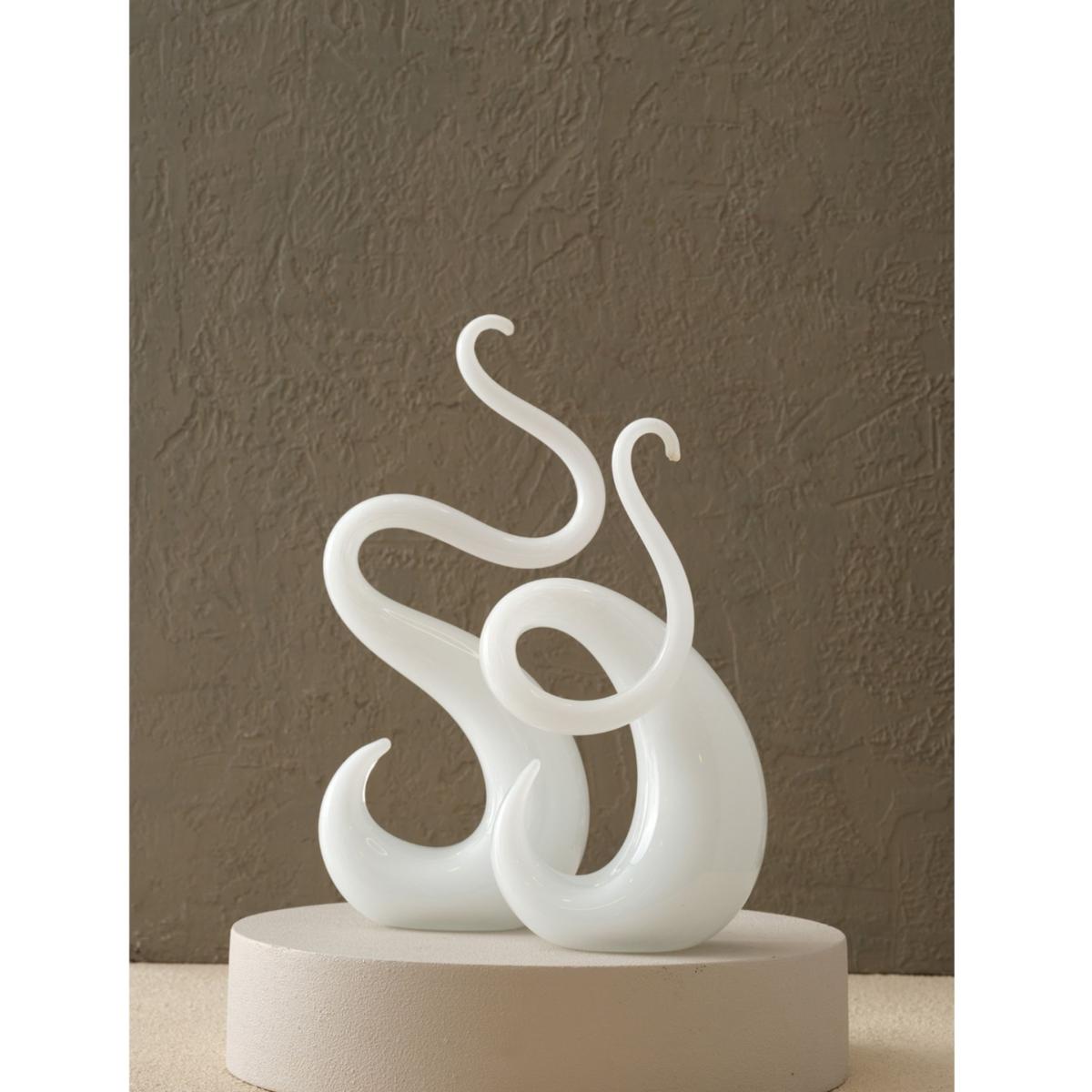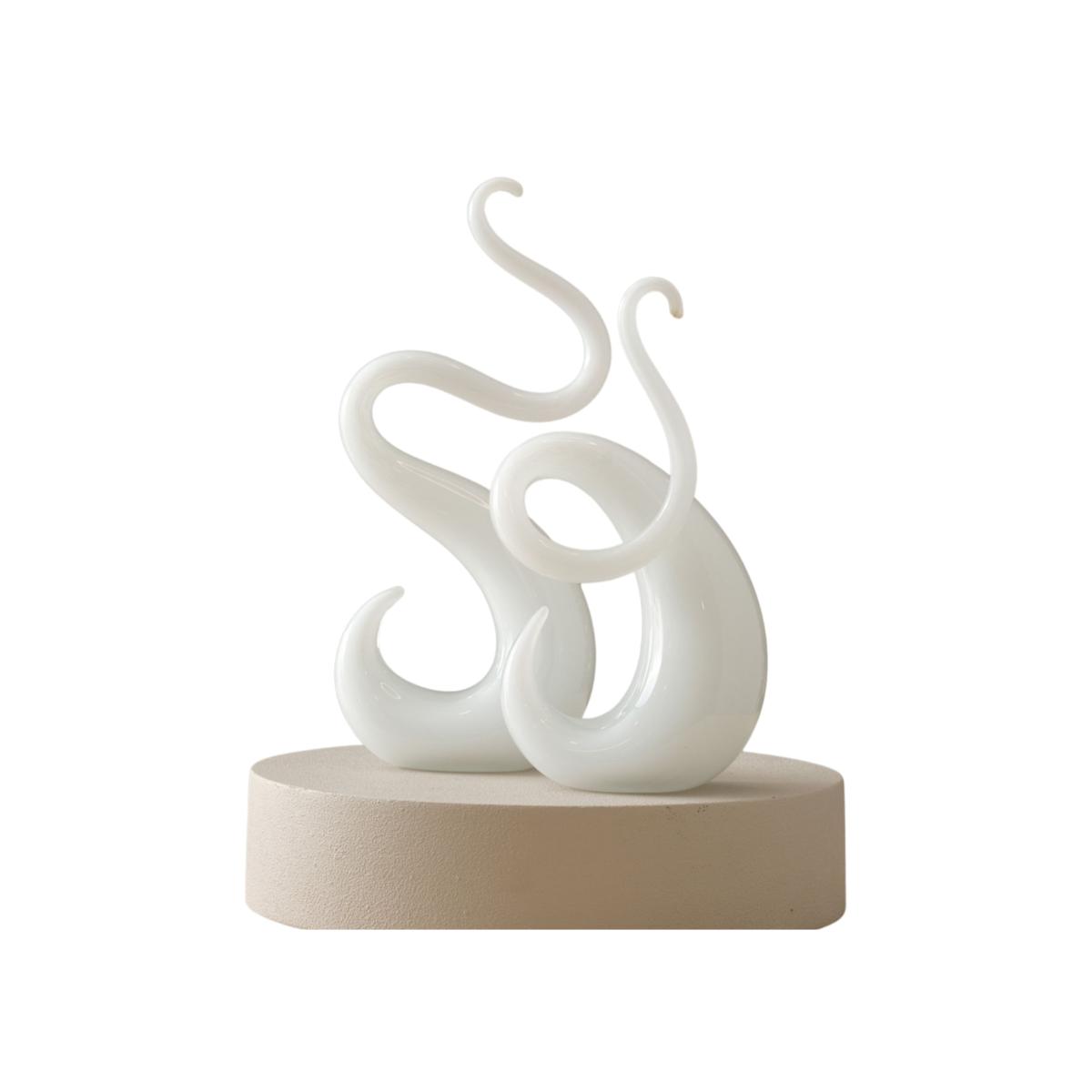 Bring a touch of modern artistry to your home with this hand-blown glass sculpture duo, available in a stunning array of colors. Each set features two elegantly intertwined forms that mimic the graceful movement of ocean waves or flowing tendrils. Expertly crafted by skilled artisans, these abstract sculptures showcase the fluidity and beauty of glasswork, making them perfect for adding a dynamic focal point to any shelf, table, or mantel. The colors range from a cool, tranquil white to bold coral and vibrant blue, allowing you to choose the shade that best complements your space.