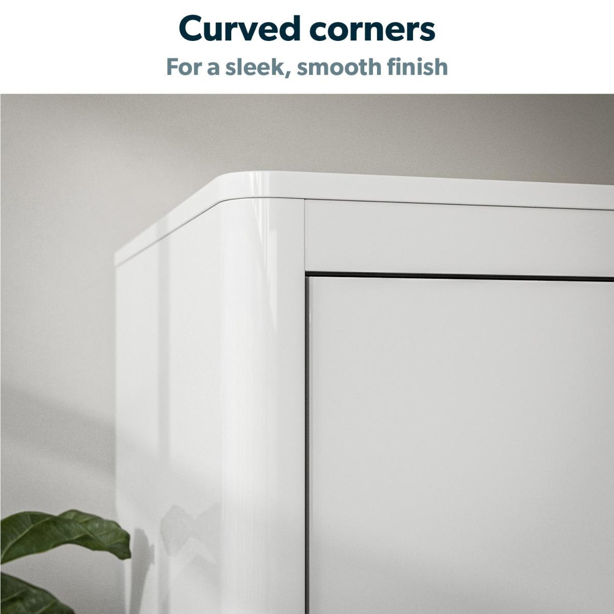 Stand out features Curved-edge design The stylish curved edges elevate the piece and ensure a sleek, smooth finish to the overall aesthetic of your bedroom. Soft-close doors Soft-close hinges provide a quieter and gentler closure, preventing any unnecessary slamming. Perfect for early mornings or late nights when your household is resting. Adjustable shelves Thanks to the height-adjustable shelves, storage is made easy. You can accommodate large items such as hats, storage boxes, chunky boots, and clothing. Adjustable feet Avoid wobbling on uneven floors thanks to the adjustable feet that give you peace of mind that your wardrobe is well-supported, even in older homes. All about me The Lexi triple wardrobe brings style and practicality to the bedroom. A great storage solution containing a full-length hanging rail and adjustable shelving, allowing you to accommodate taller footwear or chunkier folded items. The 3 mirrored and gloss doors are fitted with durable metal hinges and have a soft close mechanism. Its solid construction, premium design and modern white high gloss finish make it easy to coordinate with any interior. Don't forget to also take a look at the matching pieces in our Lexi bedroom furniture collection. Need to know Dimensions:H190 x W165 x D60 cm Colour: White Finish: High gloss and mirrored Doors: 3 Assembly required:Yes More info Smooth, easy-to-clean gloss finish Easy to coordinate with any decor The mirrored door is practical and stylish Discrete integrated handles prevent fingerprints Durable metal hinges and soft close doors Adjustable shelf with 6 height positions Full-width internal metal hanging rail Adjustable feet ideal for uneven floorboards