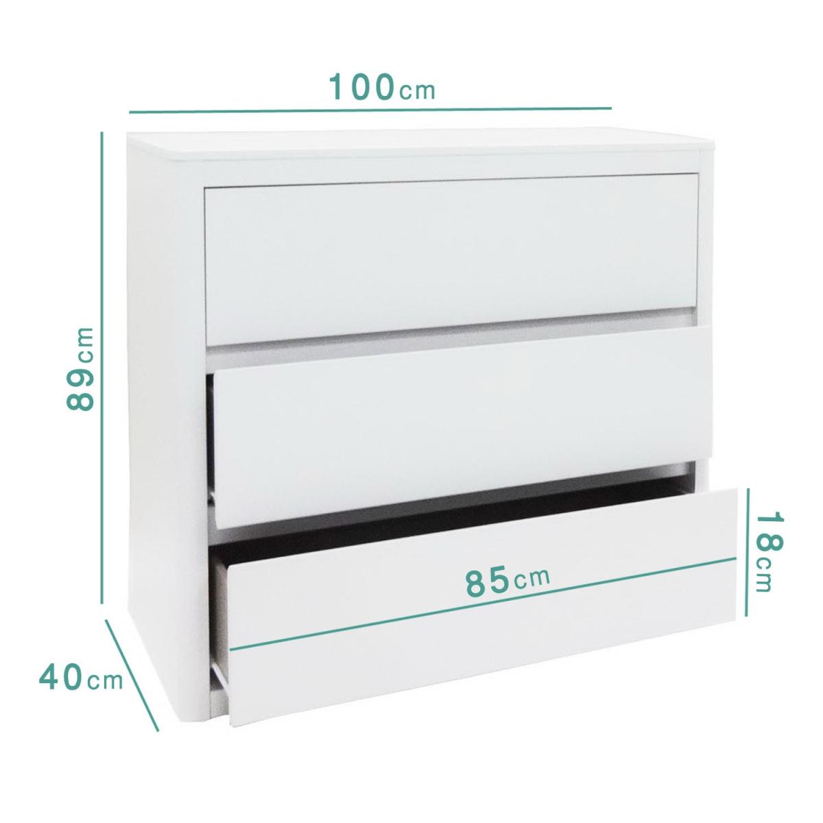 Store your folded items in style with this super sleek and seamless Lexi three drawer chest. It has a clean and modern look which features smooth curved corners along with integrated handles that give it a seamless look. It's been made from a tough wood combination and has a premium glossy finish that's super easy to wipe clean. There are three spacious drawers with contrasting mink interiors for you to keep all your essentials neat and tidy.
