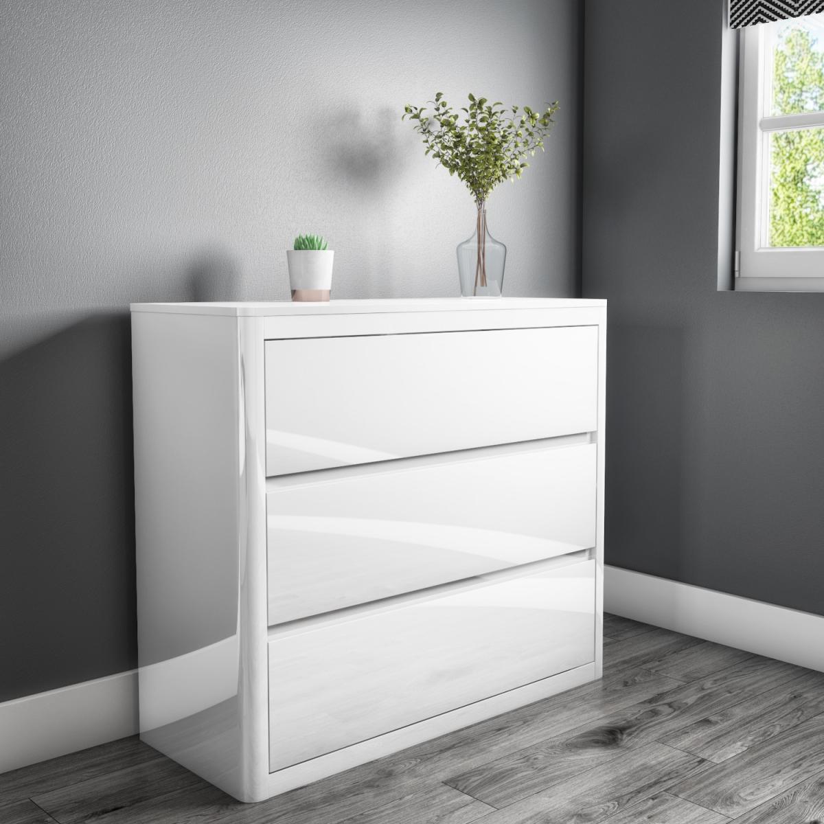 White High Gloss Chest of 3 Drawers with Curved Edges - Lexi