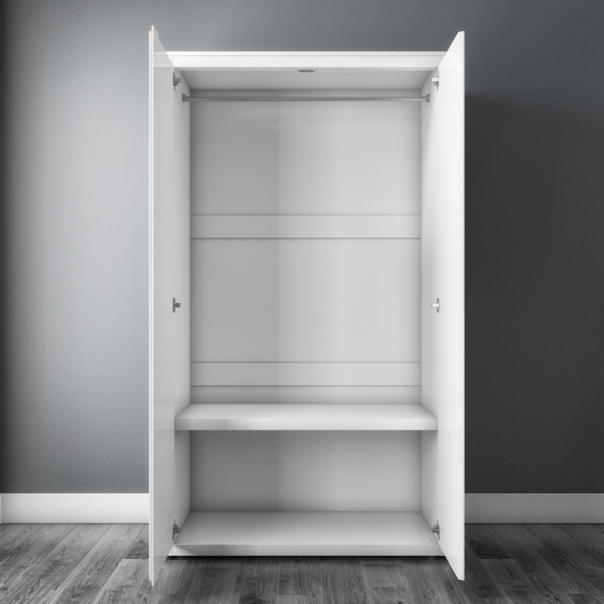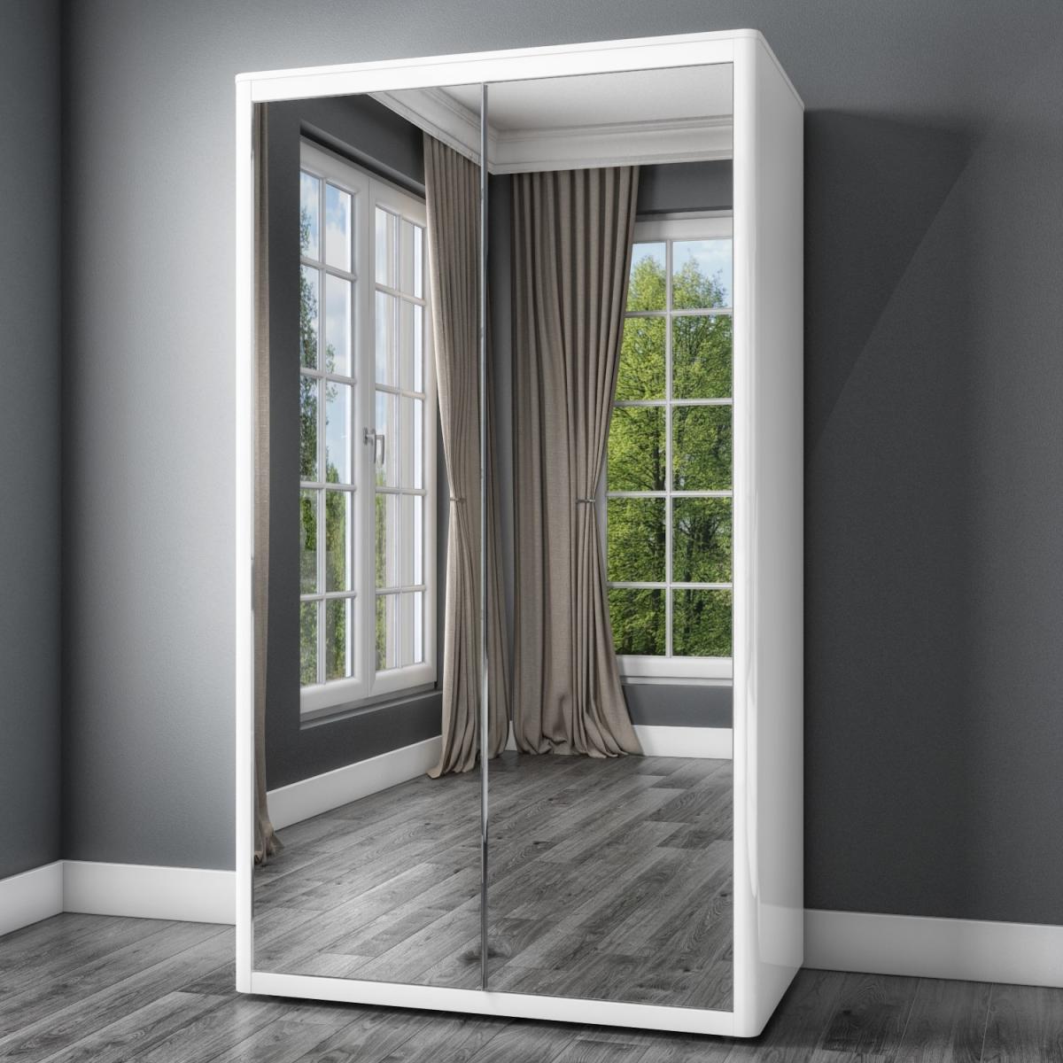 White High Gloss Double Wardrobe with 2 Mirrored Doors and Curved Edges - Lexi