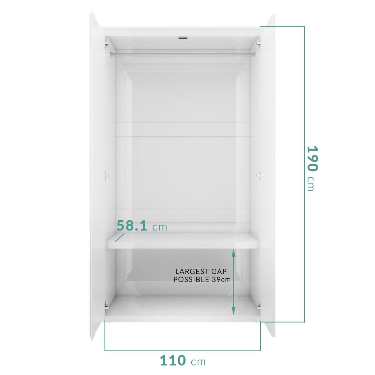 The Lexi double mirrored wardrobe brings style and practicality to the bedroom. A great storage solution containing a full-length rail and a movable shelf allowing you to accommodate taller footwear or chunkier folded items. The mirrored doors are fitted with durable metal hinges and have a soft close mechanism. It's solid construction and premium design helps it fit in with any home interior. Don't forget to also take a look at the matching items in the Lexi range.
