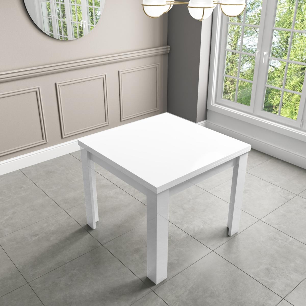 White High Gloss Extendable Dining Table with 4 Grey Fabric Swivel Dining Chairs- Vivienne