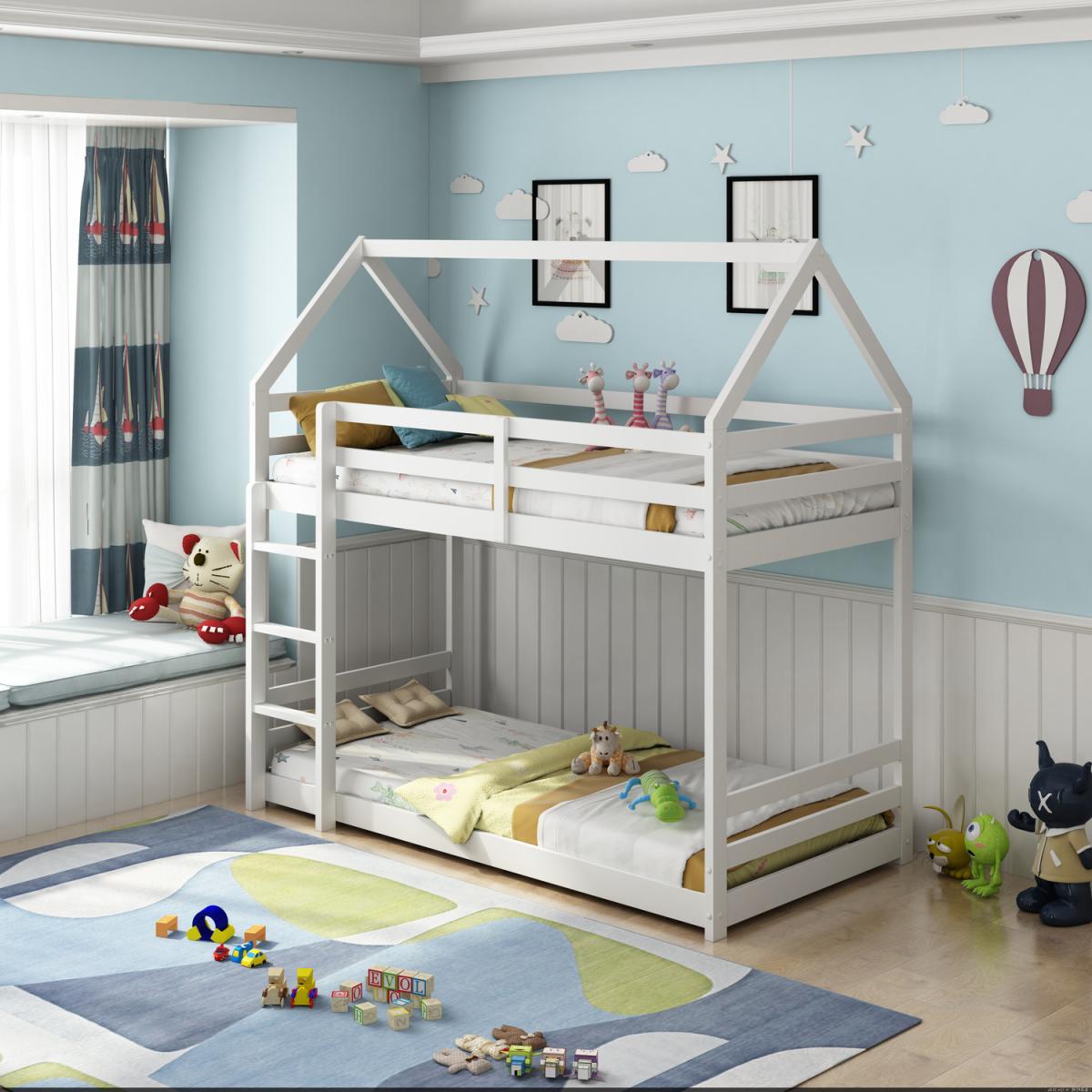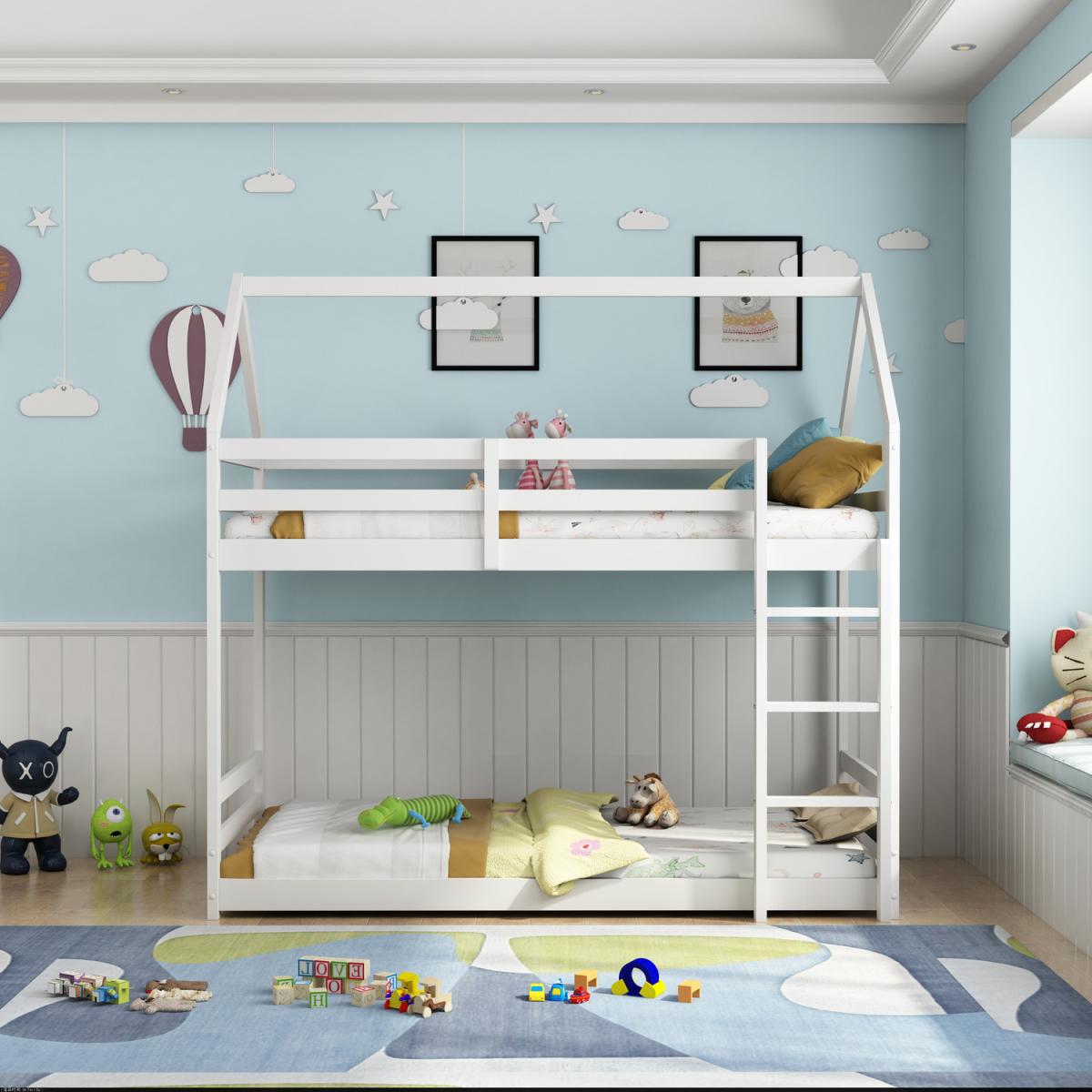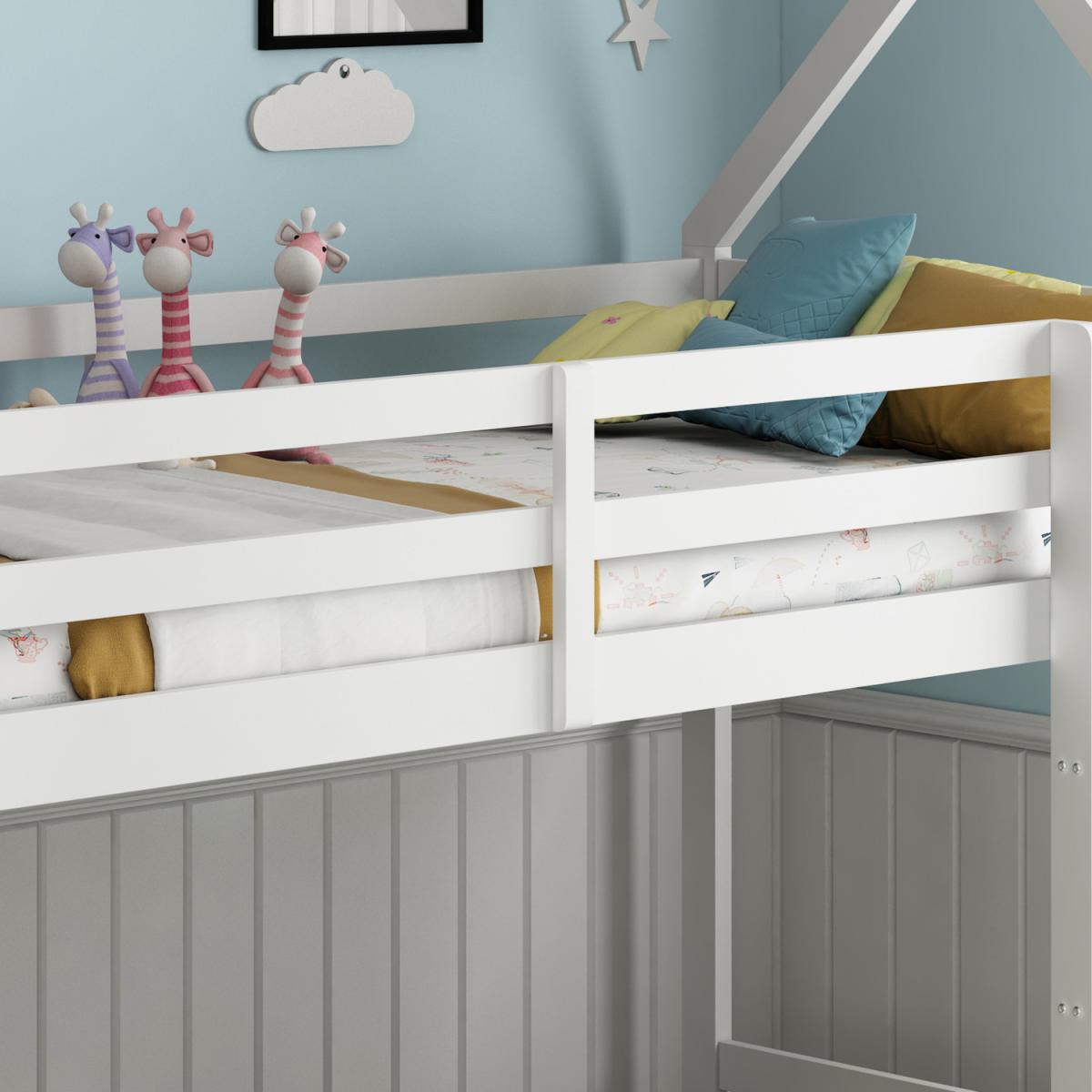 Introducing the enchanting Play House Bunk Bed, the ultimate haven for your child's dreams and imagination. This whimsical and functional piece of furniture is designed to elevate your children's bedroom experience to new heights of creativity and comfort. Crafted with utmost care and attention to detail, this bed is a splendid combination of functionality, aesthetics, and sturdiness. With a captivating design reminiscent of a charming playhouse, the Play House Bunk Bed is more than just a sleeping arrangement, it's a world of endless adventures waiting to be explored. Its exquisite white colour adds a touch of elegance and purity to any room, creating a delightful atmosphere that complements various decor styles. Whether it's a fairy tale adventure, a secret hideout, or a cozy reading nook, the Playhouse Bunk Bed invites your children to embark on imaginative journeys within the comfort of their own room. Bring home this exceptional piece of furniture, where dreams come to life, and watch as your child's creativity and joy flourish in their very own playhouse bunk bed. Dimensions: (L) 197.2cm x (W) 97.1cm x (H) 210cm.