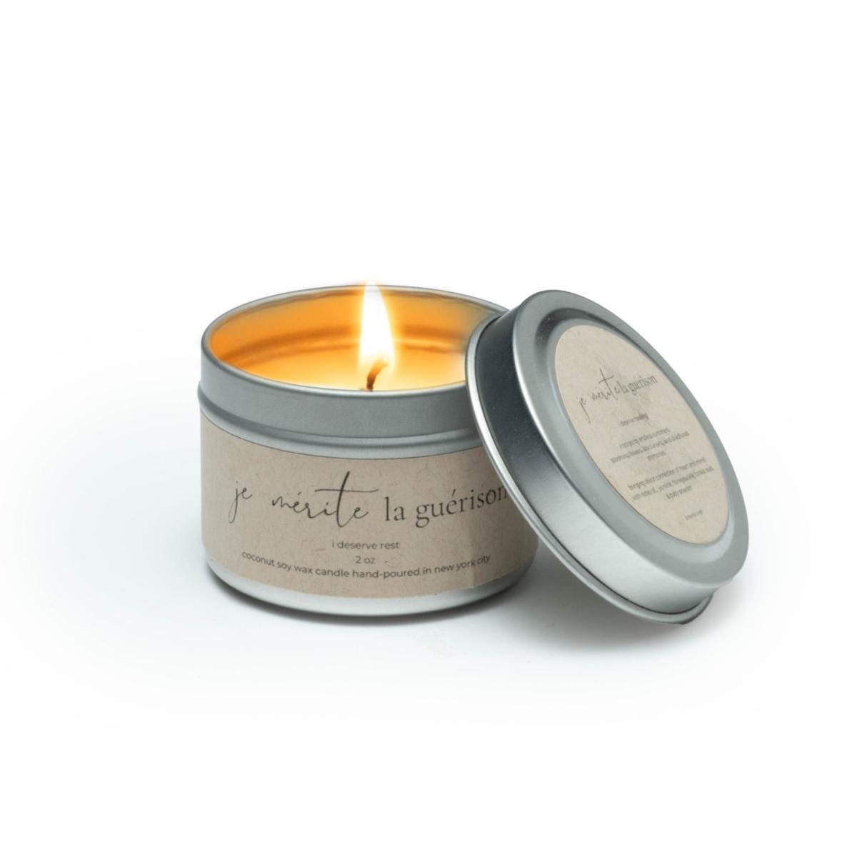 Je Mérite La Guérison (I Deserve Healing) is an aromatherapy candle bringing about the connection of heart and mind, with notes of jasmine, honeysuckle, tonka, oud, and baby powder. Inspired by endless summers, blooming flowers, late sunsets, and warm breezes. May our sensual fragrances invite you to indulge and pamper yourself. You deserve it!