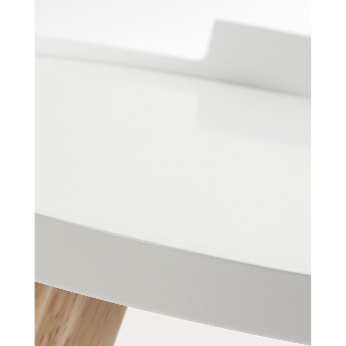I’m a fan of this white Kurb side table for its clean, functional design and easy mix-and-match appeal. The tray-style top keeps books, candles or a small plant neatly contained, while the slender oak legs add warmth and a Scandinavian touch.