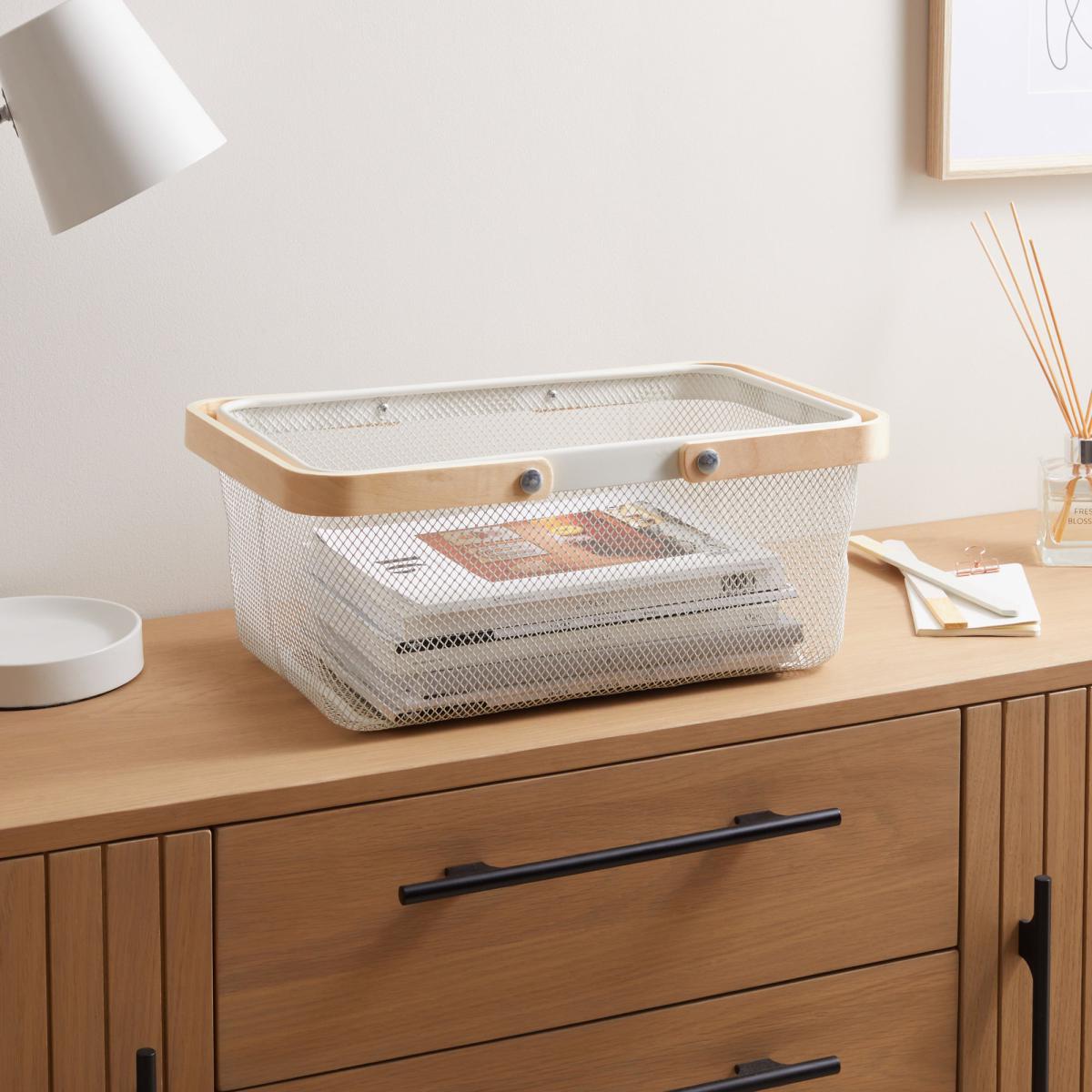 I love this basket for its versatile, clean-lined aesthetic that suits a variety of interiors, from minimalist and Scandinavian to coastal décors. Its large size makes it practical for organising everything from magazines and throws to craft supplies. The white finish keeps it looking fresh and light, helping it blend seamlessly into both neutral and brighter colour schemes. Practical styling tips include placing it on open shelving or sideboards for easy access or grouping multiple baskets for a cohesive storage solution. Its open wire design also allows you to see contents clearly, which is a real time-saver when tidying or locating items quickly.