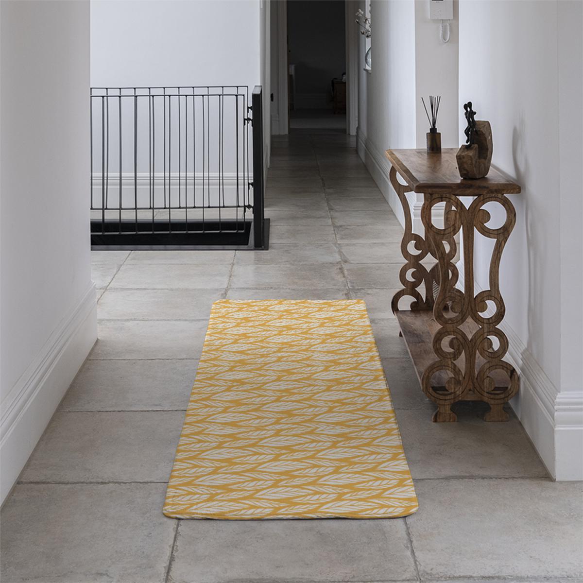 I really like this runner for adding a splash of colour and pattern to a neutral or modern space. The white leaf design on the orange background makes it visual without overwhelming, making it ideal for hallways, kitchens, or quiet corridors. It works exceptionally well layered over wood or laminate flooring, creating warmth underfoot, and is practical for everyday use thanks to its durable design. Style-wise, pairing it with solid-coloured furnishings helps it stand out as a statement piece, but it can also be combined with other patterns for a more eclectic look. For a cohesive vibe, consider coordinating with other orange or yellow accents in cushions or accessories. It’s a simple way to introduce a lively, contemporary touch to your corridor or narrow space.