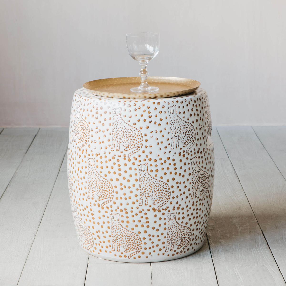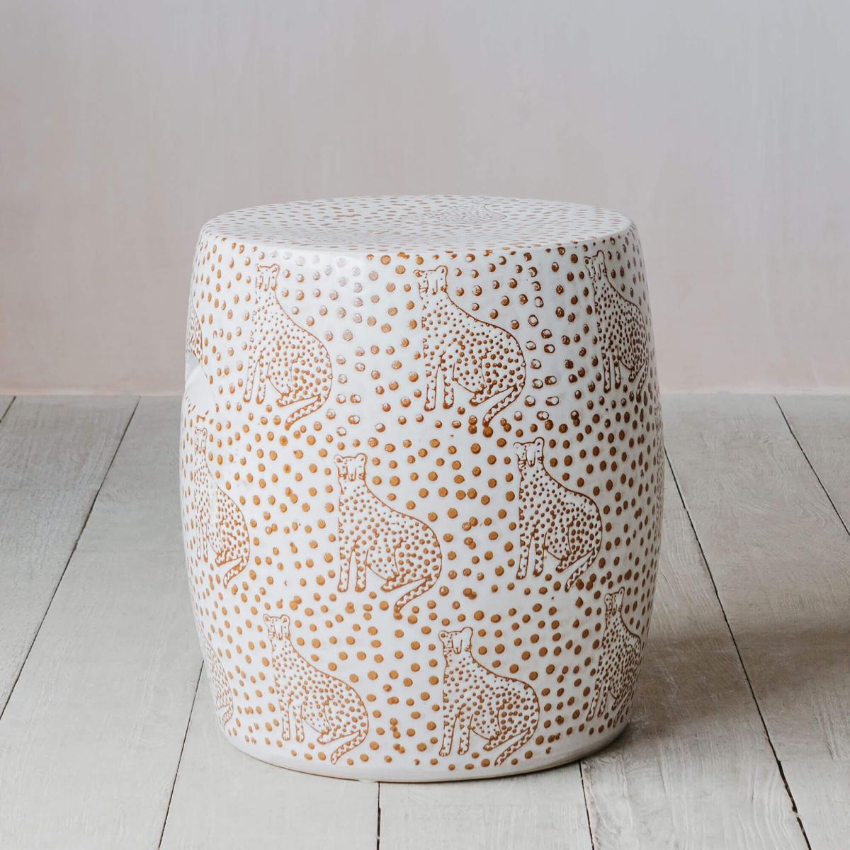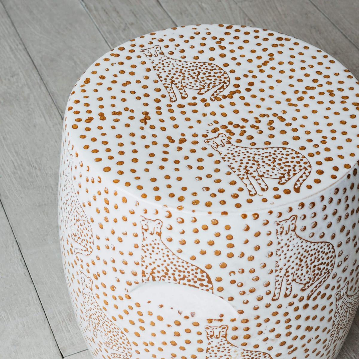Each white leopard stool will be as unique as their spots, made from ceramic with a raised relief print of the rare and refined feline. Perfect for a jungle themed living room or a child's bedroom.