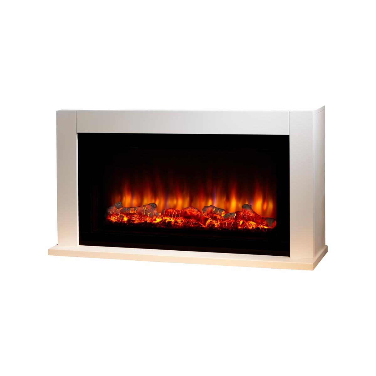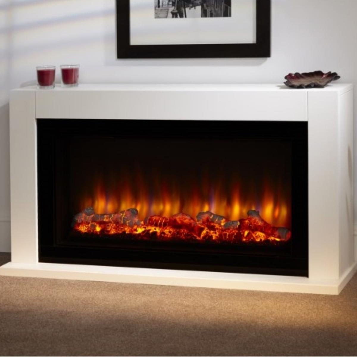 Dimensions W121.5cm x H67.5cm x D30cm. Sit back relax and enjoy the dancing and shimmering flames of the low level Lumley electric fireplace. The perfect height for wall mounted TV's. Featuring an attractive black gloss frame borders the fire and a textured white landscape surround completes the stunning and composed look. Features Dimensions. W121.5cm x H67.5cm x D30cm Contemporary style creates a focal point in any living room Low level panoramic electric fireplace in a textured white finish. Stunning glowing log bed creates a warm and cosy athmosphere Realistic Flickering flames on a glowing log fuel bed1 and 2kW heat output. Energy efficient LED flame effect with flame effect only option. Flame brightness can be adjusted with the remote Thermostat control maintains a comfortable room temperature1KW setting= 13p per hour2KW setting= 26p per hour. Installation. No flue or chimney required. Can be installed against any flat wall..