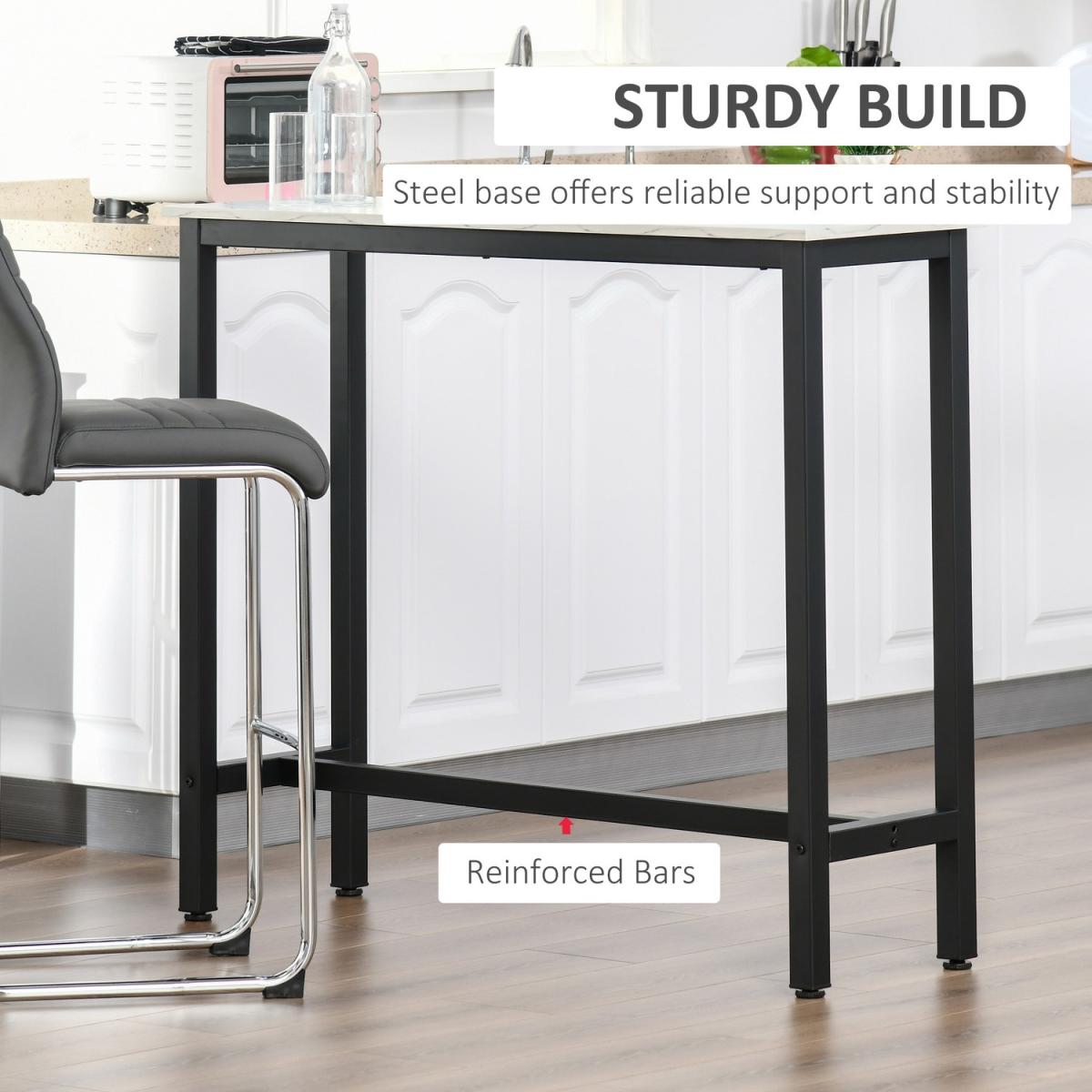 Add this modern bar table to your home for the perfect place to eat, drink or socialise. The white faux marble table top with black metal base ensures it will look great in many home décors. Pair with your favourite bar stools and create an ambient place to relax with friends.