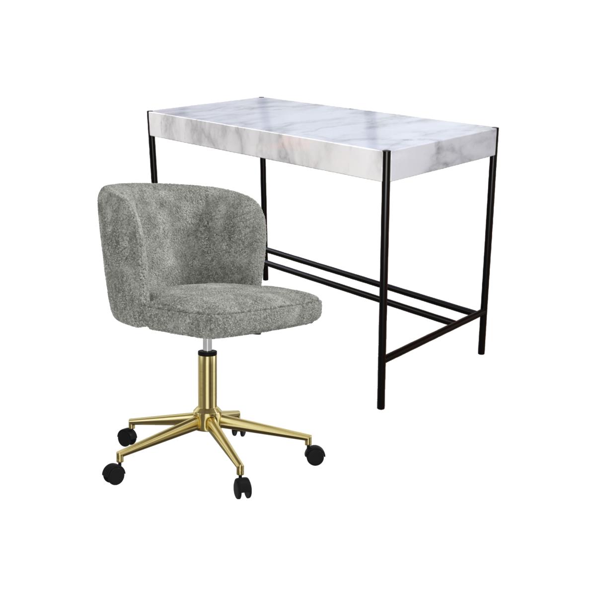 White Marble Effect Office Desk & Grey Teddy Office Swivel Chair - Roxy - Rowan