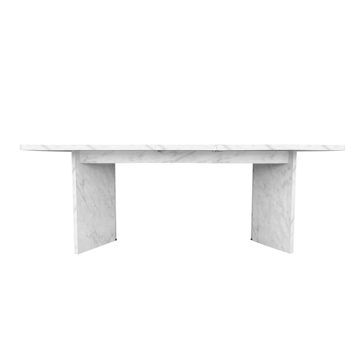 This bundle includes: 1 x White Marble Effect Pillar Extendable Dining Table – Geneva 6 x Beige Boucle Dining Chairs with Brass Legs - Callie All about me Make a statement with this large, sleek dining set. The table easily extends with a butterfly leaf mechanism, and the textured marble effect top is easy to wipe clean, scratch-proof and heat-resistant. It comes complete with six luxurious Cream & Beige Two Tone Boucle Dining Chairs with Brass Legs for an eye-catching finish. Need to know Dining Table Dimensions:W100 x D180-220 x H76.8 cm Weight: 46 kg Seats: 6-8 people Colour: White Finish:Marble Material: Textured Melamine and MDF Assembly required: Yes Dining Chairs Number of chairs: 6 Dimensions:W49 x D56 x H79 cm Weight: 6.9kg Max supported weight: 130 kg Colour: Beige and Brass Material: Boucle and metal Assembly required: Yes
