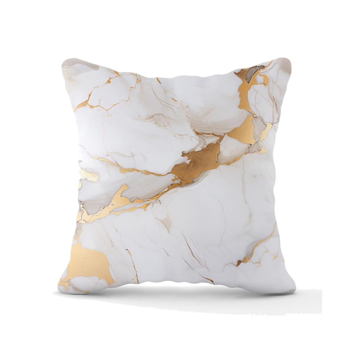 White Marble With Gold Outdoor Cushion - White / 60cm