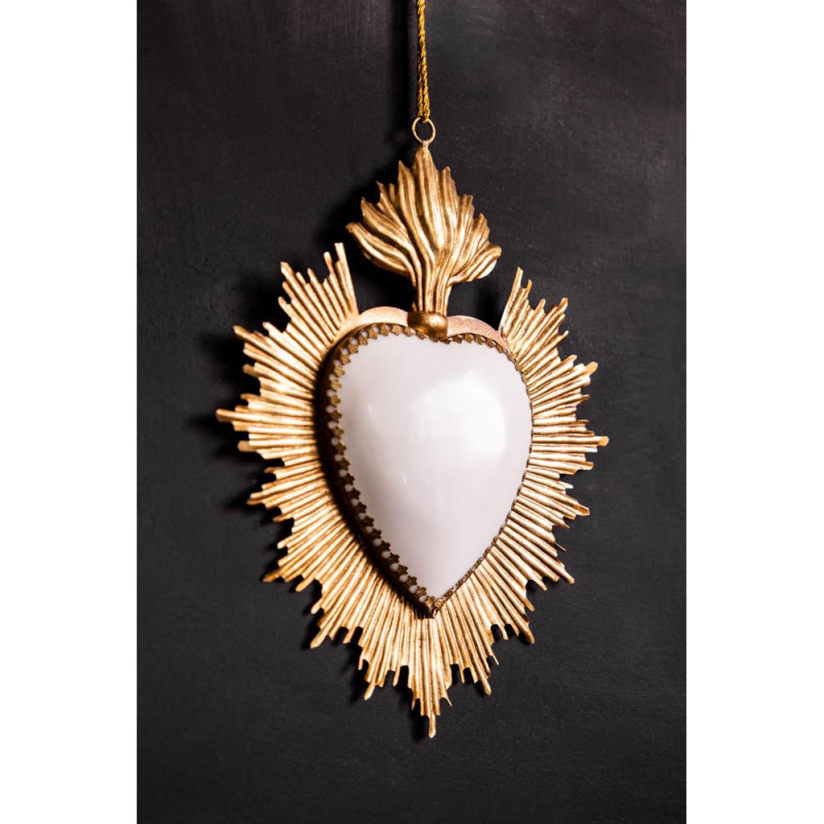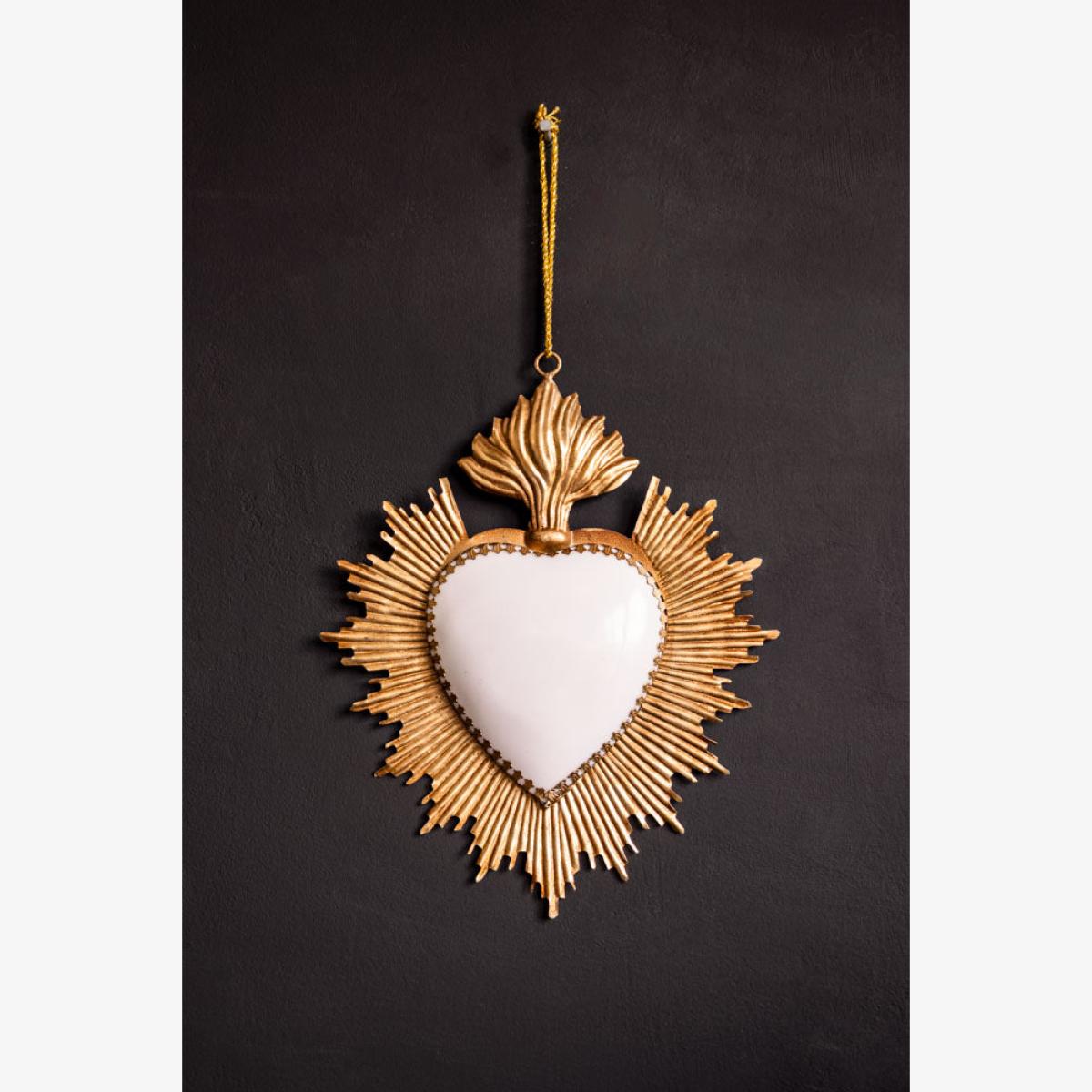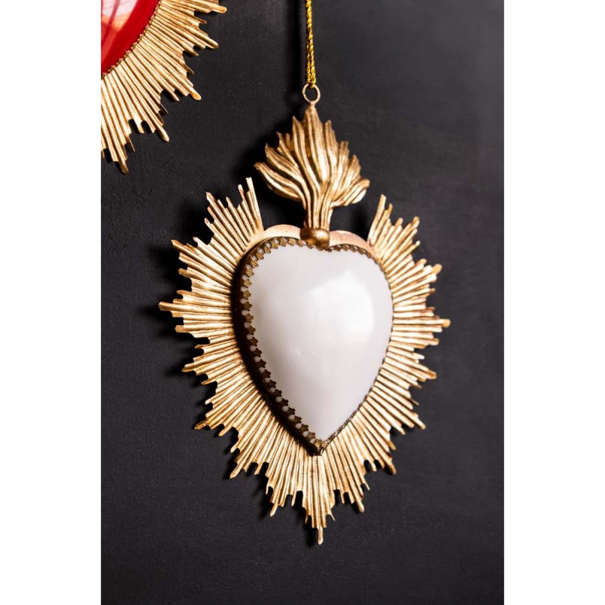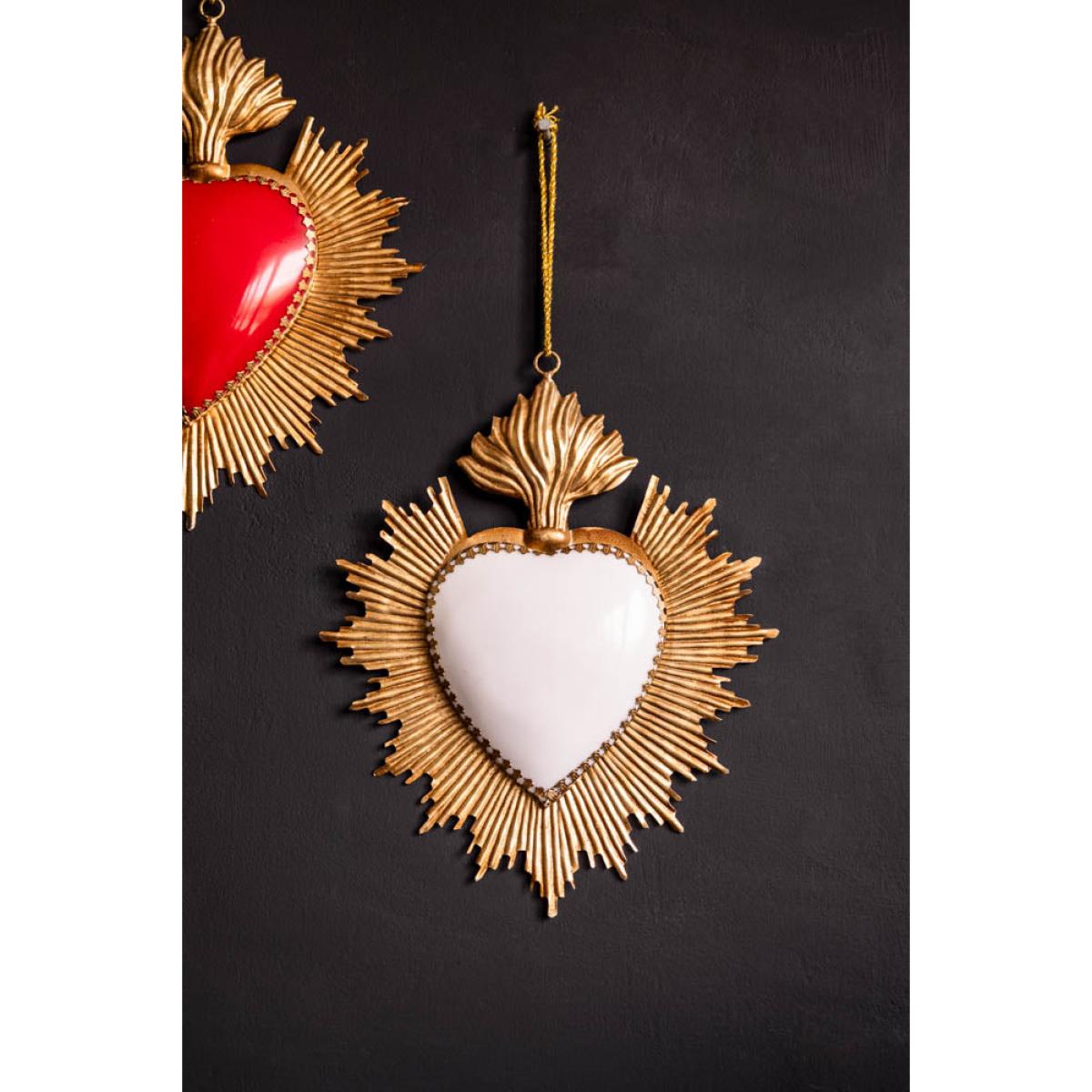 Meet the dreamy sister to our fiery red heart – the White Milagro Heart Wall Hanging Decoration. This gorgeous, unique wall hanging décor has a crisp white heart at the centre, surrounded by golden Milagro rays that shimmer with charm. It’s a little bit whimsical, soft, but still every bit a statement maker, your home décor accessories deserve. Perfect for adding a touch of magic to a gallery wall, brightening up your home accessories, or gifting to someone who loves unique, meaningful art – this heart is all about light, love and playful elegance. Think of it as a little love note for your walls. - White Milagro Heart Wall Hanging Decoration - Measures: W17cm x D2.5cm x H21cm - Materials: Metal - Handle with care and wipe clean only