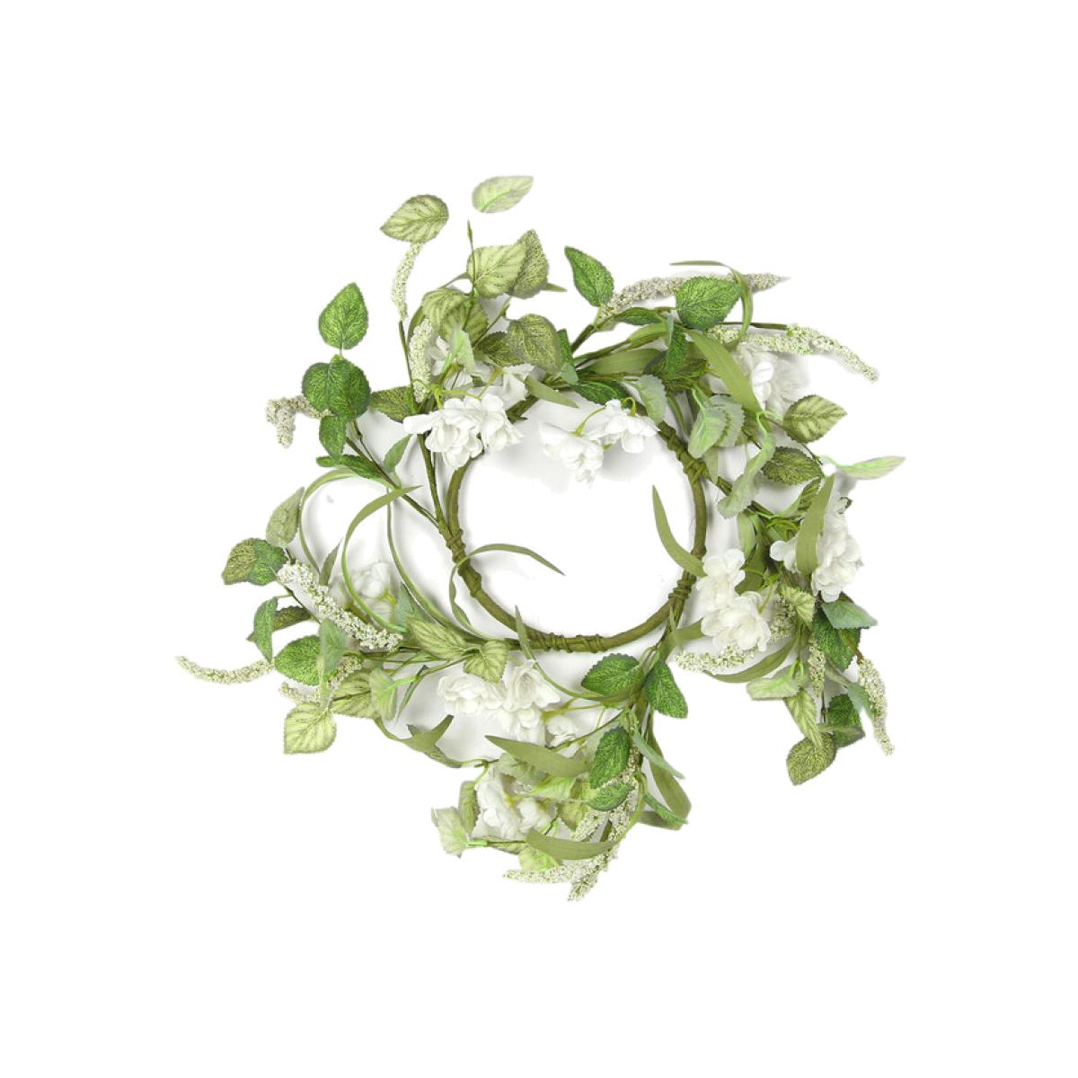 The White Natural Floral Ring is a beautiful addition to your home or event venue. Featuring beautiful green leaves and natural white flowers to bring a light, spring-like aura to your space, this ring is perfect for hanging on doors, walls, or even laying on tables to help bring the outdoors in, leaving you with a bright and beautiful piece of decor to uplift your home.
