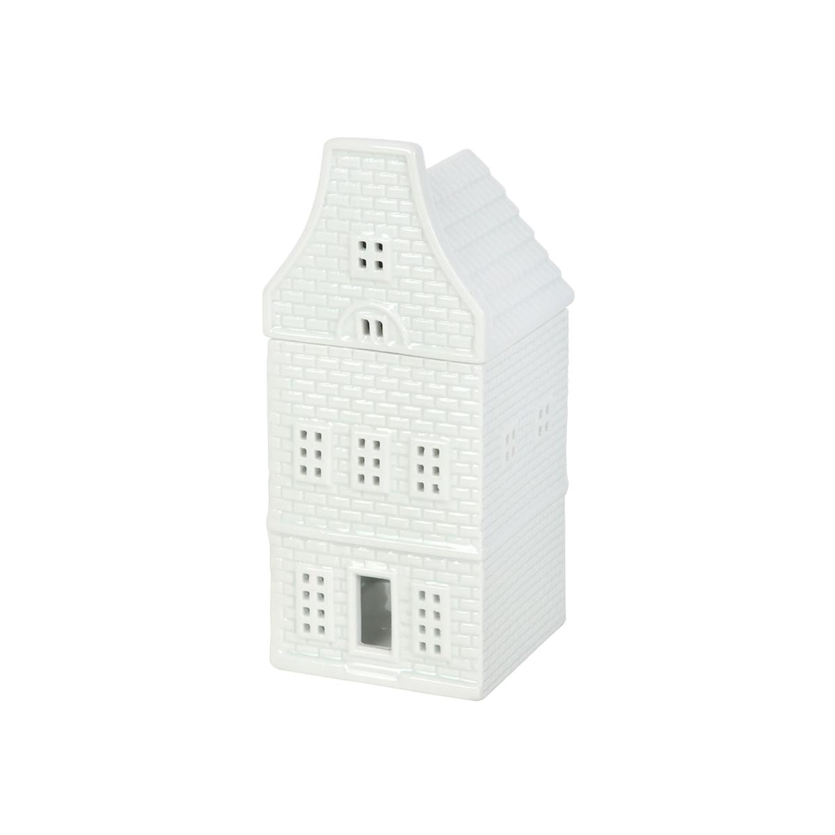 Create a wonderfully cozy and inviting atmosphere with this elegant White Ceramic Nordic House Oil Burner. Inspired by the charming architecture of Scandinavian townhouses, this beautiful burner is a perfect blend of minimalist design and warm functionality. Simply place a single standard tealight in the space at the back and add a few drops of diluted fragrance oil or wax melts in the bowl. Always remove the lid whilst in use. The real magic begins when you light a candle inside. A warm, welcoming glow emanates from the tiny cut-out windows, turning the piece into a miniature illuminated house and creating an instant feeling of 'hygge'
