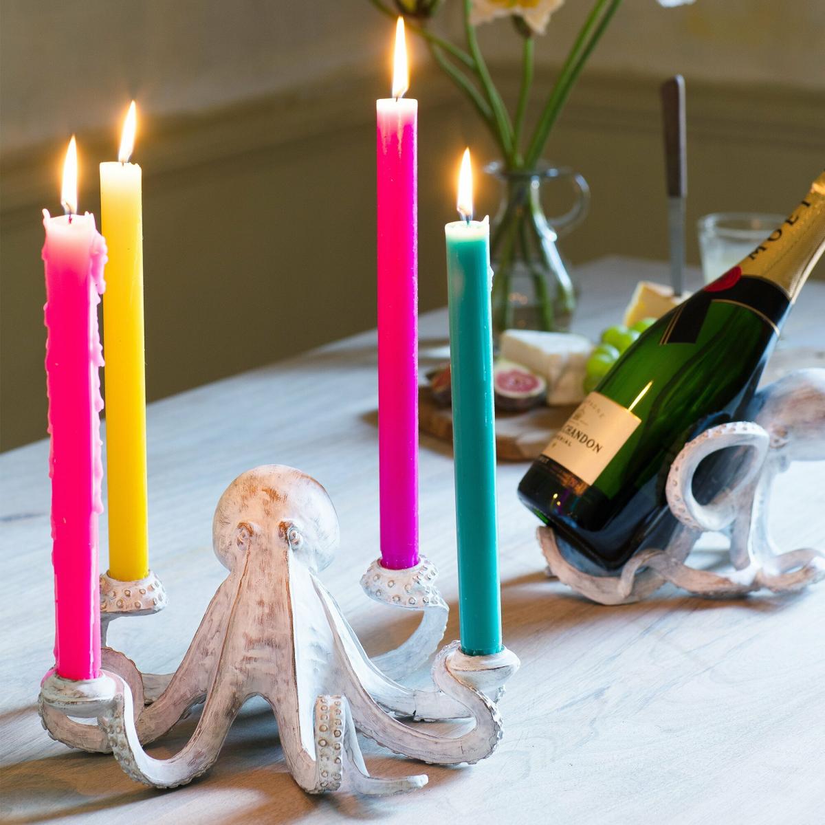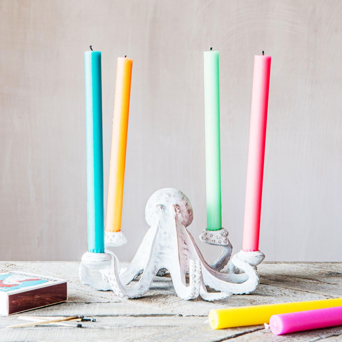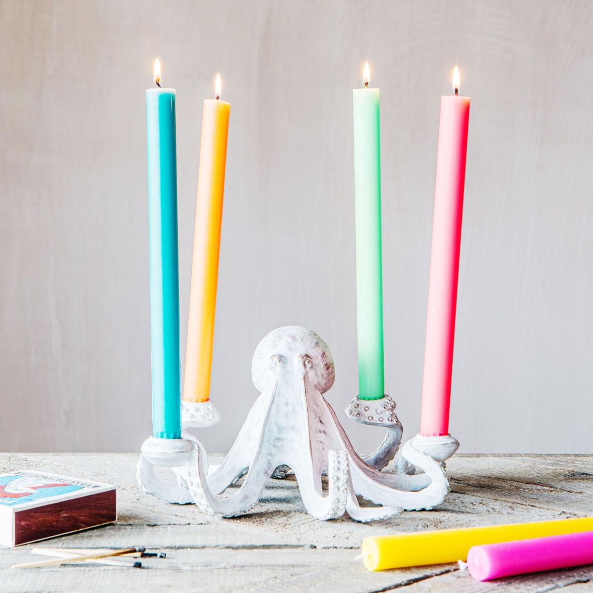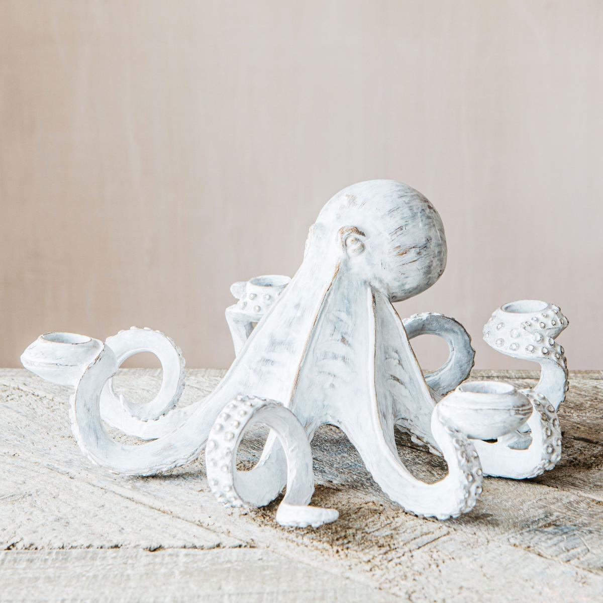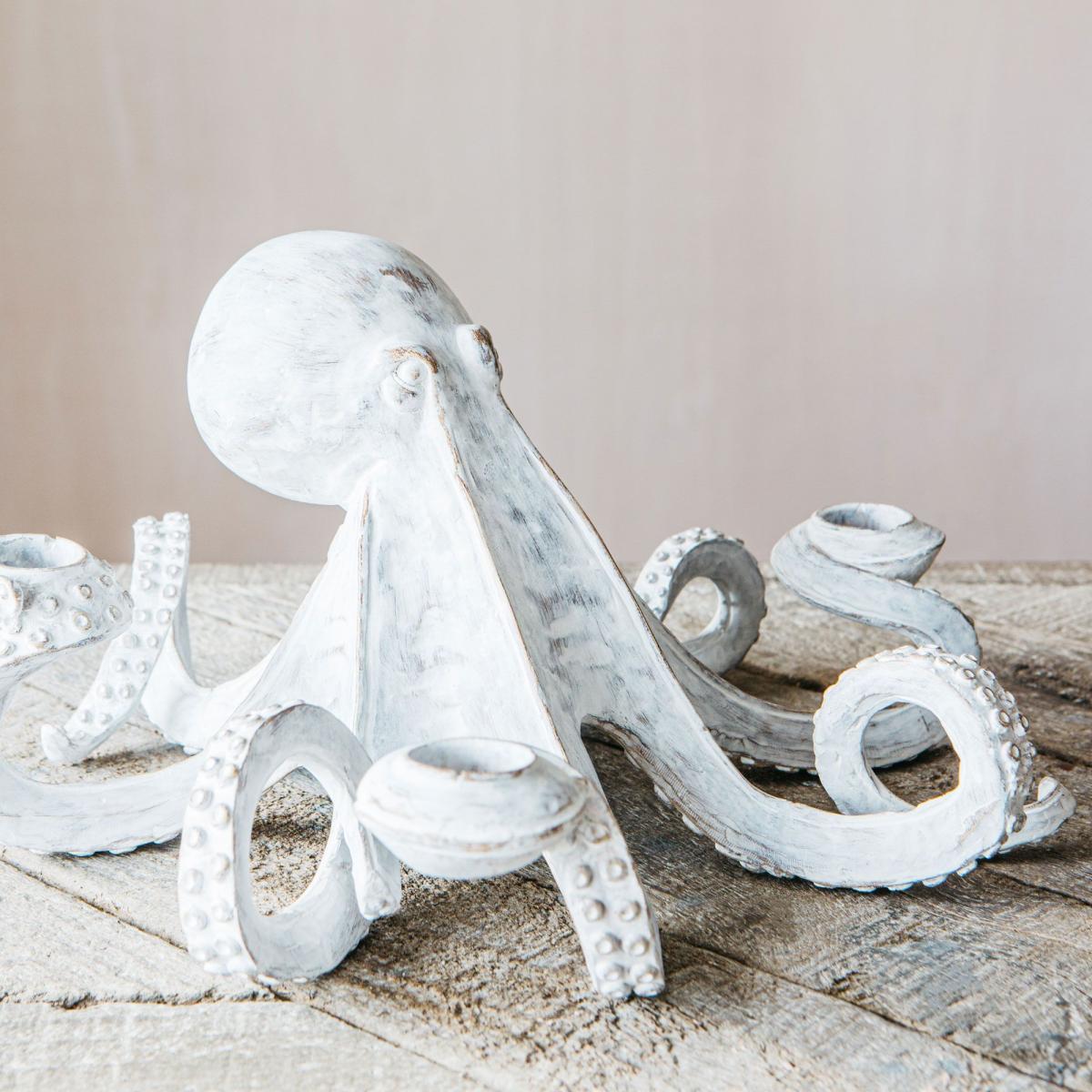 Our octopus candlestick holder in white is a stylish way to bring a nautical flair to the home. With space to hold four candles , this candle holder will work perfectly as a table centrepiece or as a decorative ornament on your mantel.