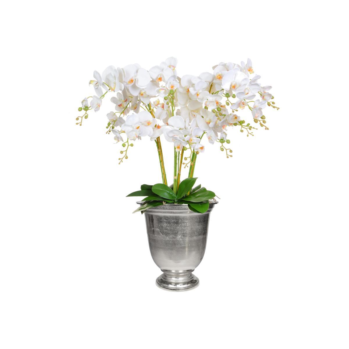 This beautiful and elegant artificial orchid plant requires no care – just sit back and enjoy those gorgeous silken blooms. Why you'll love it. Gorgeous large-scale artificial orchid in a vintage-inspired vase. Elegant indoor bloom is the perfect finishing touch. Statement proportions – 160 cm tall. Cascading orchid flowers are made of silk. Comes with a lovely bell-shaped silver-coloured metal vase. What you need to know. Artificial orchid plant is made of silk. Metal vase. Dimensions. Width: 60 cm (23.6 inches). Height: 160 cm (63 inches).