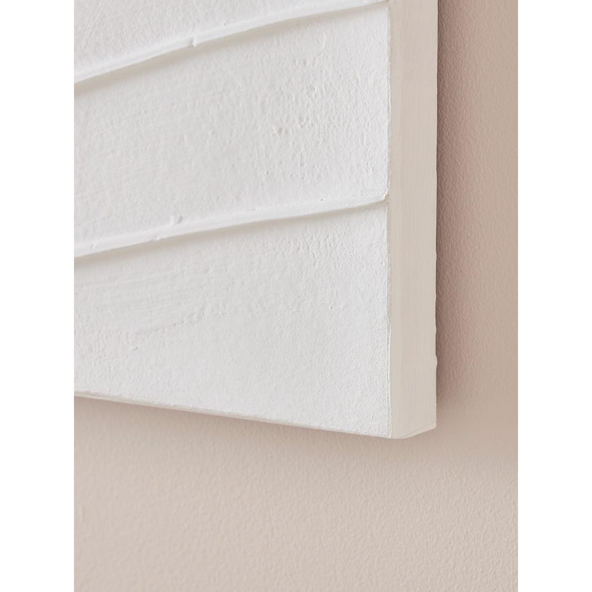 Add a textural dimension to your wall with this architectural art work that will promote calm in any setting. Presented in matte white on canvas, the hand painted piece depicts the simplified veining of a large palm leaf.