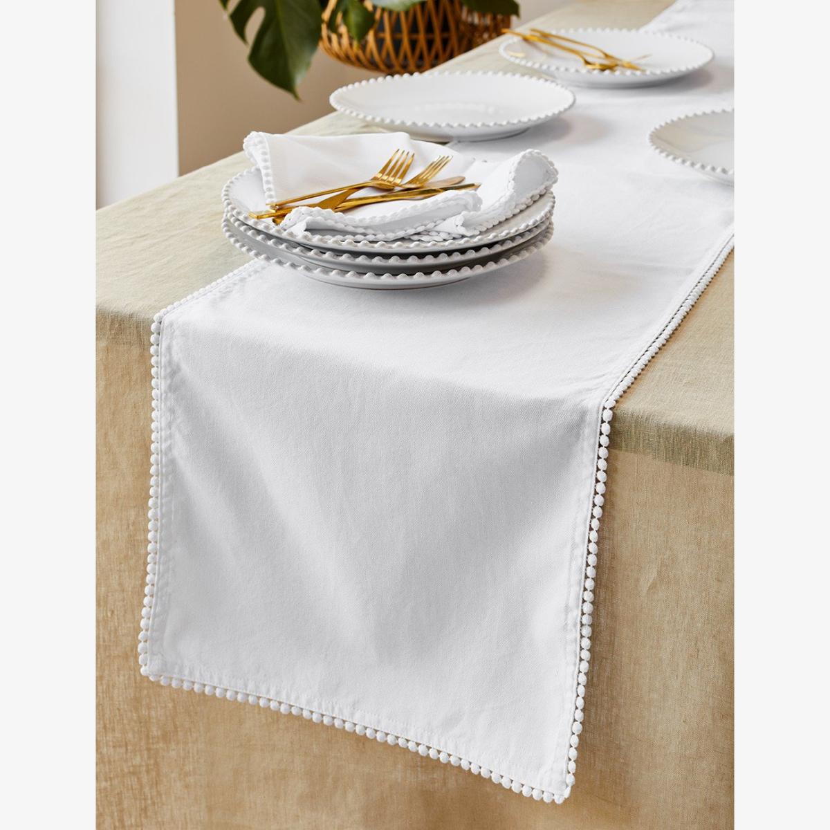 Layer your table with our soft and luxurious White Pearl Edge Table Runner. Adorned with pearl detail on crisp white cotton, this table runner is perfect for elevating your tablescape and creating a timeless dinner setting. With its modern design, this table decor can be used time and time again, looking just as beautiful in the Christmas season as it does on a fresh summer day. The table runner perfectly complements our Pearl Stoneware Dinnerware Collection with beautiful napkins and placemats to match.