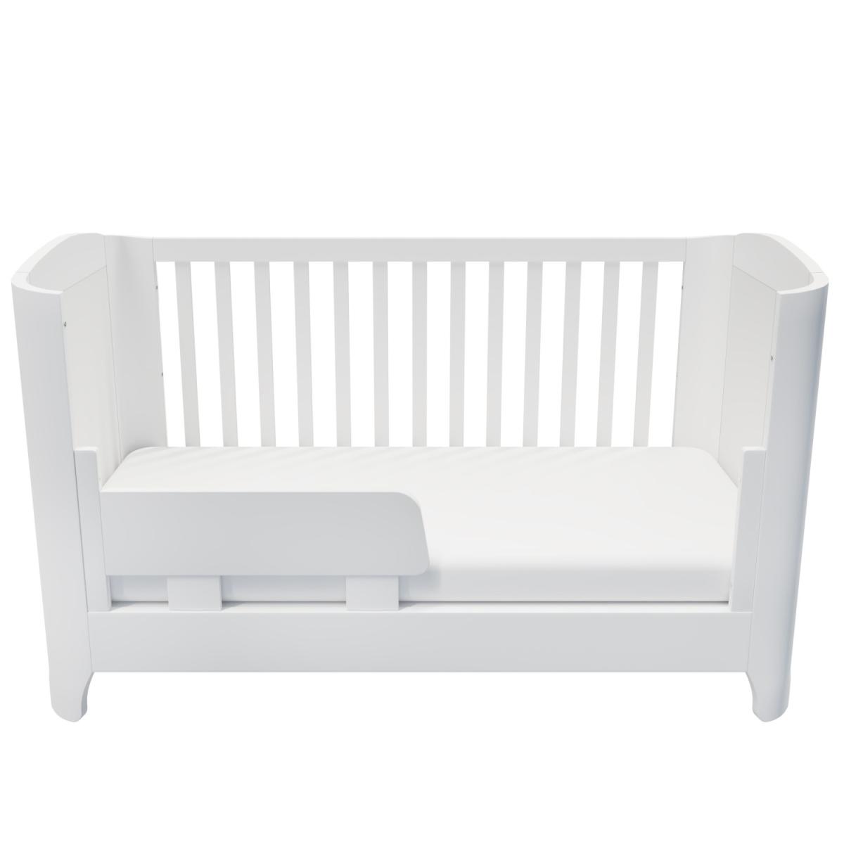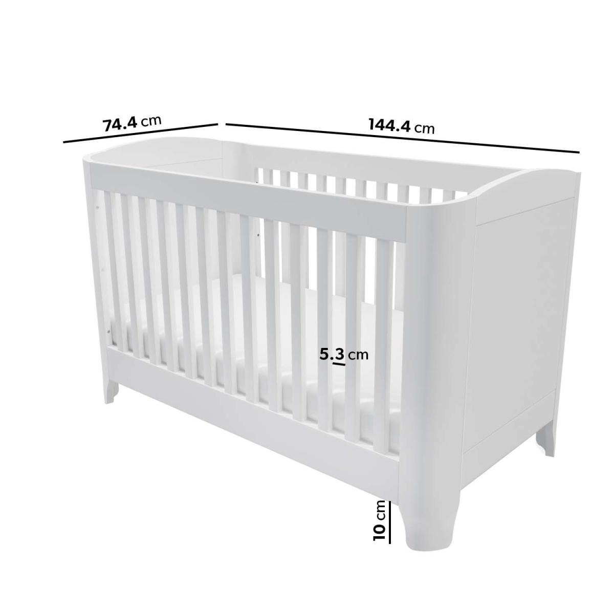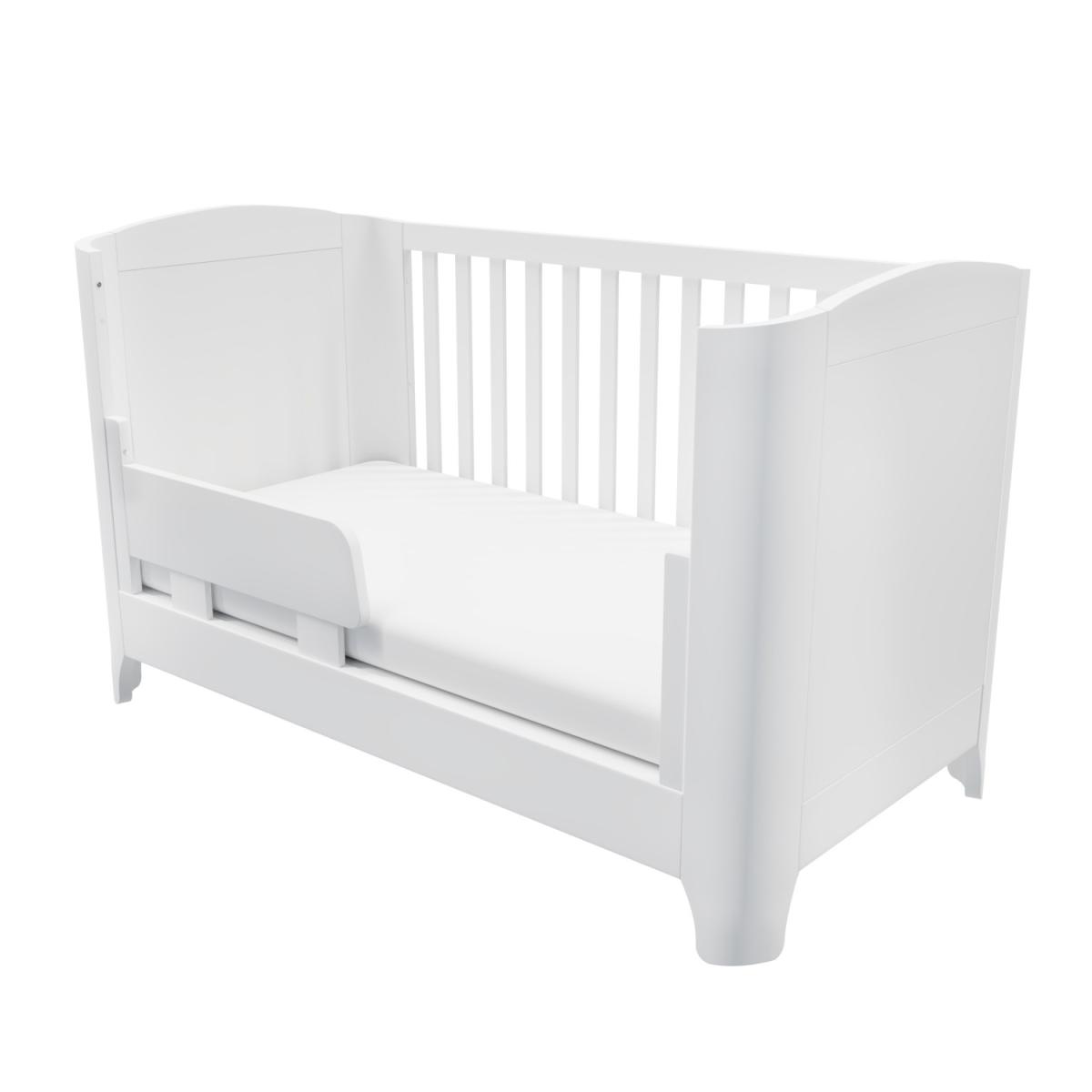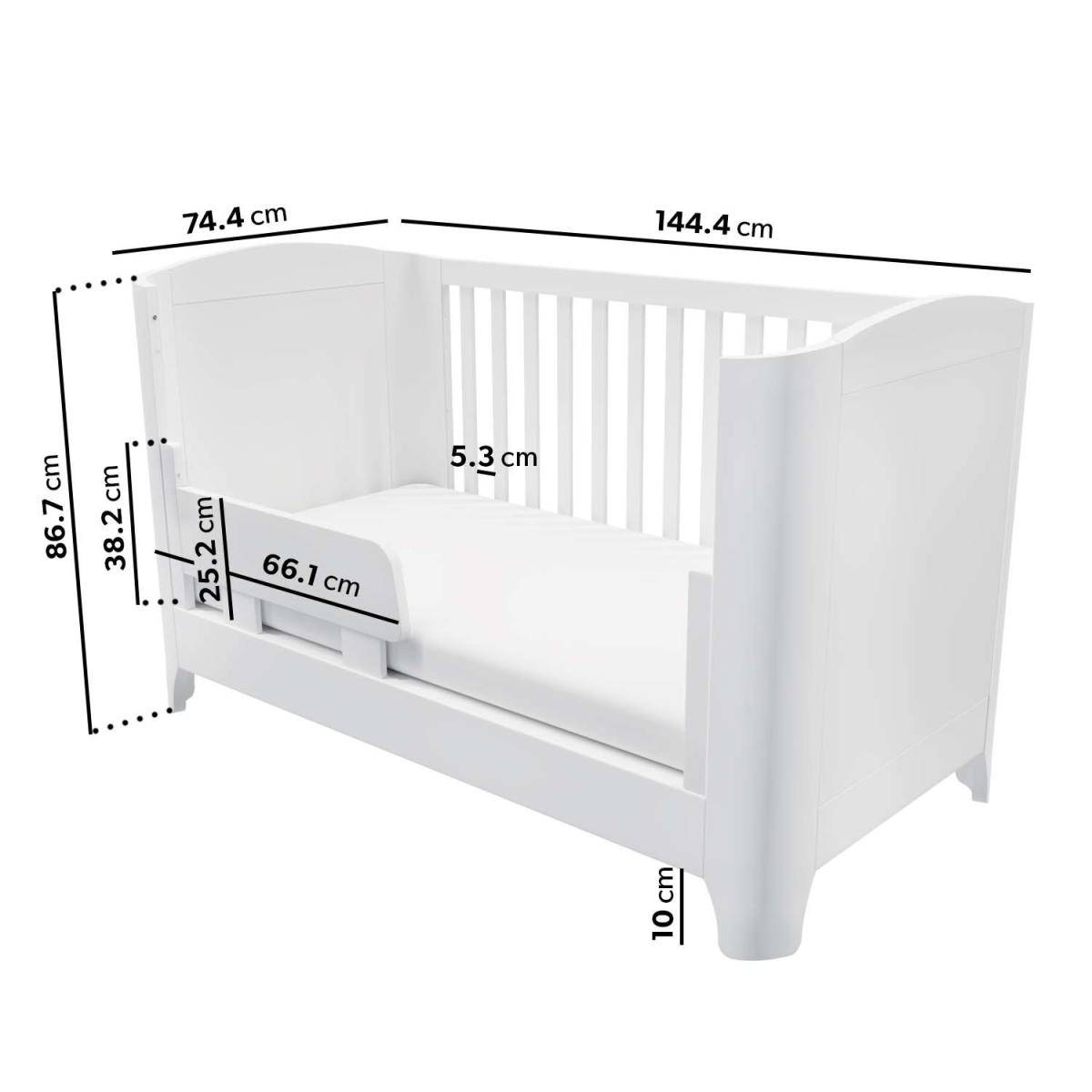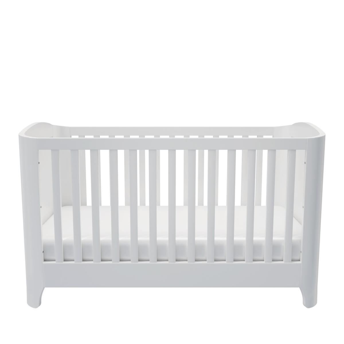 Features we love Adapts into a toddler bed that lasts up to 4 years old. With contemporary curved edges and; white painted finish. The 3 cot base heights make it easy to lay baby down. Made from sustainably sourced New Zealand Pine A matching 3-drawer changing station is also available All about me. Create a cosy space for your baby to rest and sleep with this Shiloh wooden cot bed. Designed with baby in mind with smooth curved edges soft lines and thick-set legs it’ll bring a touch of class to any nursery setting. There’s an adjustable base making it easy to lift your child in and out. Plus once they’re ready or can climb out it converts to a toddler bed; it even includes a bed guard to help the transition. Add the matching 3-drawer changing station to complete the suite. Need to know. Packaging dimensions. Box 1 W94 x D99 x H15 cm / Box 2 W75 x D147 x H5 cm Packaging weight. Box 1 15kg / Box 2 14 kg Product dimensions. W74.4 x D144.4 x H86.7 cm Age range. From birth until 4 years old Product weight. 29kg Bed mattress size. 140 x 70 cm Colour. White Finish. Painted Material. Solid pine frames and ends (New Zealand Pine) Bed base. Wooden slatted Includes. Bed guard For use. Indoors Assembly required. Yes Mattress included. No. Conforms to European safety standard EN 716 2008+A1 2013 and British safety standard BS 8509 2008+A1 2011.