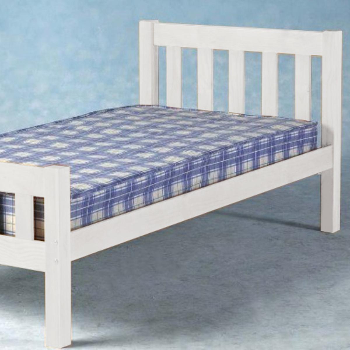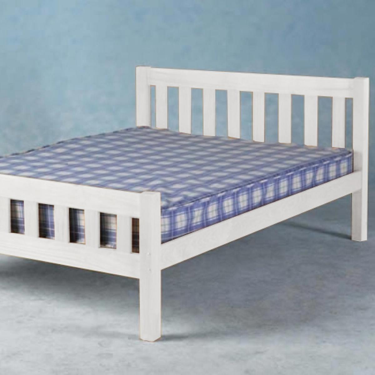 This solid sturdy wooden bedframe has a solid fixed slatted base for rigidity and support, with an open slatted headboard and footboard for a rustic style.