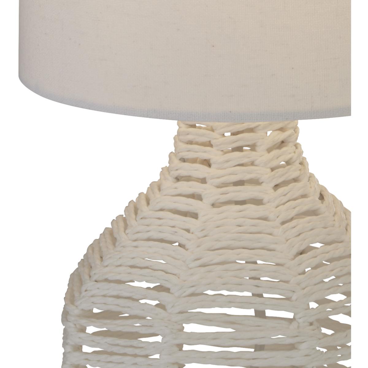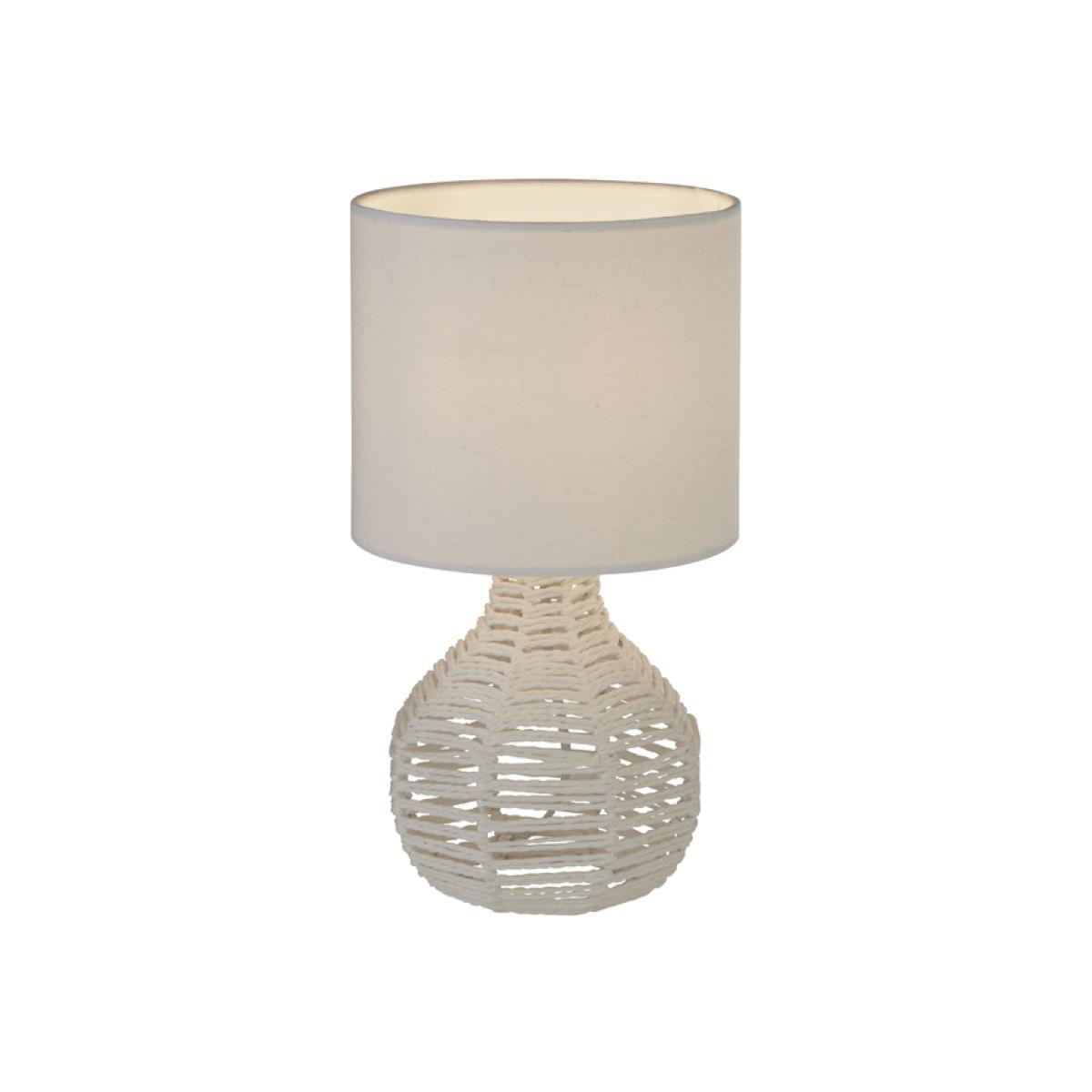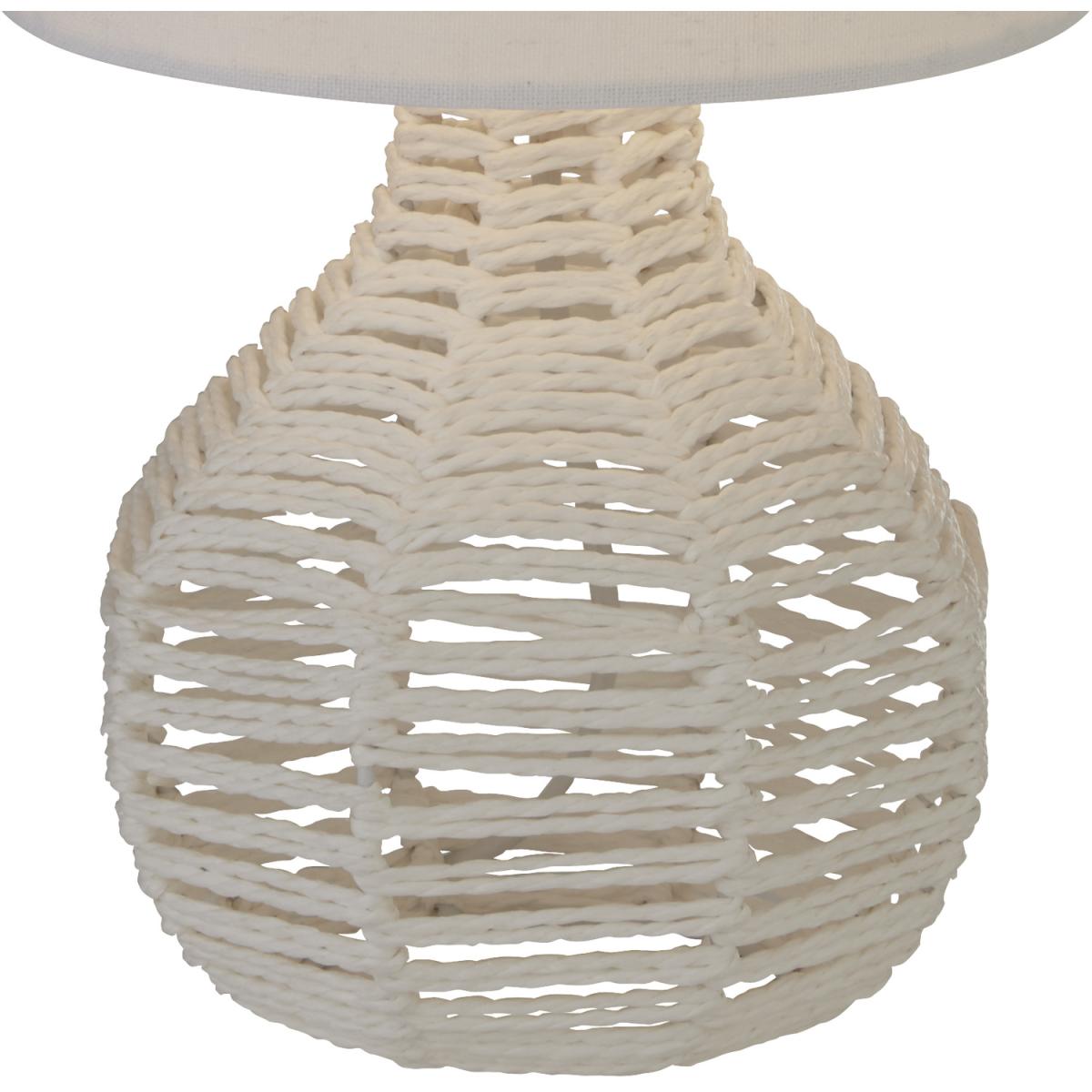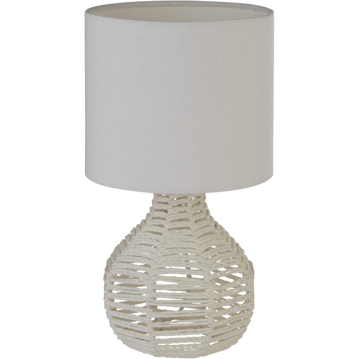 White Rattan Table Lamp With Linen Shade - White