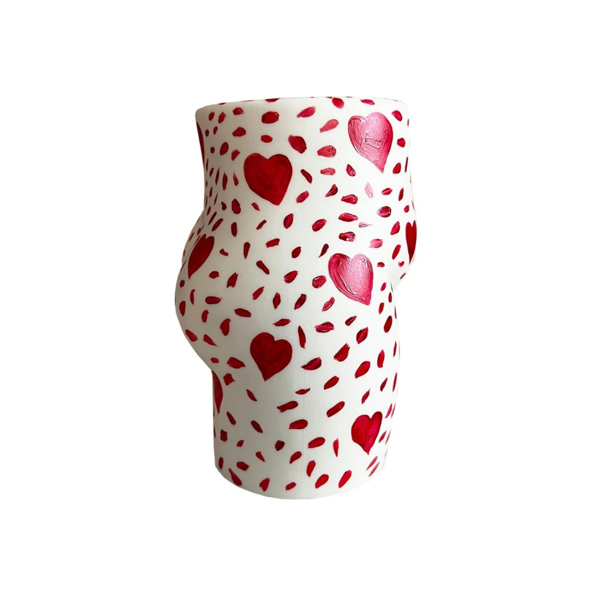 I love this quirky vase for its playful take on traditional shapes, making it a fun statement piece in both contemporary and eclectic interiors. Its bold red hearts and cheeky booty shape bring a sense of humour and personality to display shelves or side tables. Ideal for adding a pop of colour, it works well paired with minimalist neutrals or romantic floral arrangements. For practical styling, consider filling it with simple greenery or single-stem flowers to enhance its shape without overwhelming the design. It’s a versatile piece that injects character into spaces like living rooms, bedrooms, or even bathrooms, especially when you want to add a touch of fun and individuality.