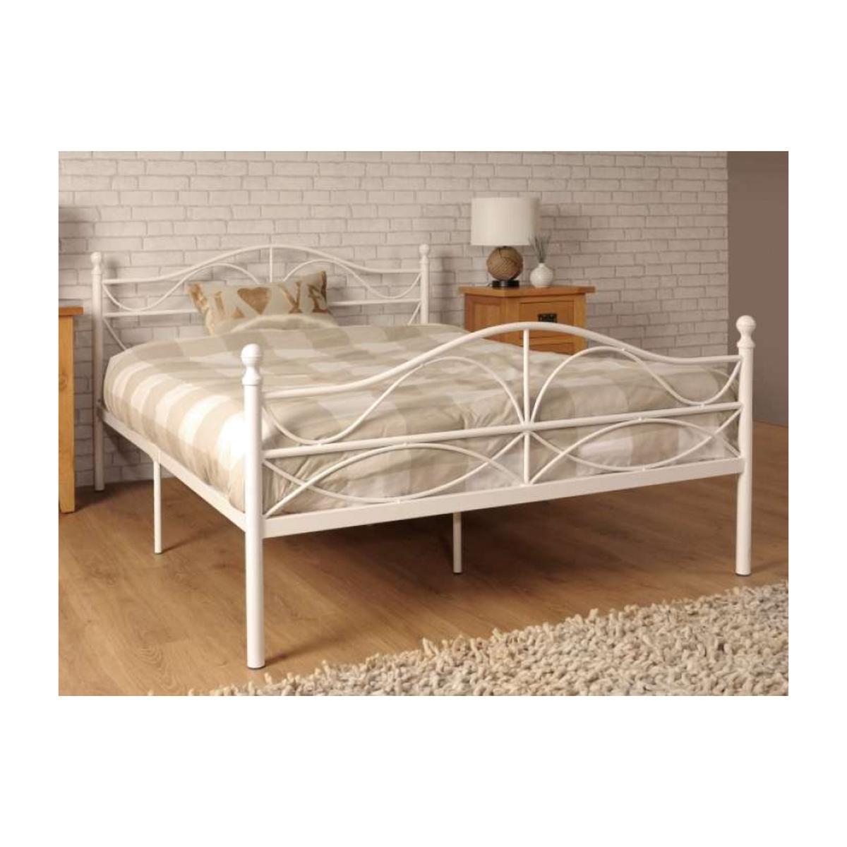 White Scroll Effect Metal Bed Frame - King