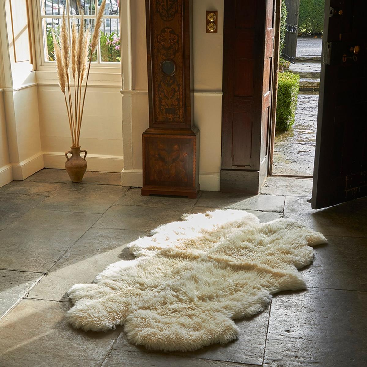 WOW, Quad Yetti sheepskin rugs are guaranteed make an undeniable statement, four of these glorious rugs joined together in one stunning "carpet" is bound to bring texture and individuality into your home, these striking rugs will ensure that your interior décor that is bang on trend and get compliments from everybody. Four rugs are hand selected that are similar in size, texture, colour and wool characteristics (that is a lot harder than it sounds) then join them together to make one extra-large rug or small carpet. This spectacular piece is superb for many uses, obviously as a rug, but also on the bed, settee, wall hanging, or sofa back, the uses are endless and the impact is obvious. Sheepskin rugs are ideal for use on the floor as mats, carpets, seat covers or sofa backs.