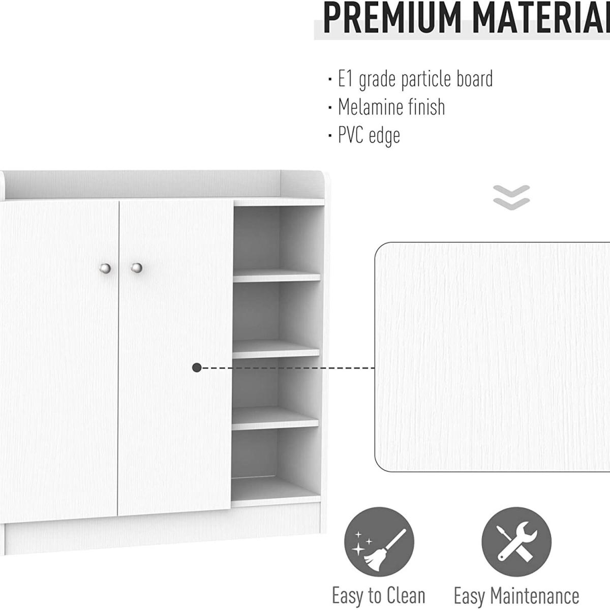 The shoe cabinet from HOMCOM is designed to offer an ideal storage solution that perfectly fits any decor of your room. It comes with a 4-tier open and 4-tier closed area, where the shelves can be adjusted up and down helping store and organise up to 12 pairs of shoes neatly to keep your hall or entryway tidy and clear. Made from durable E1 chipboard it ensures long term use. The modern design with aluminium alloy handles will easily match any room decor in your home or office.