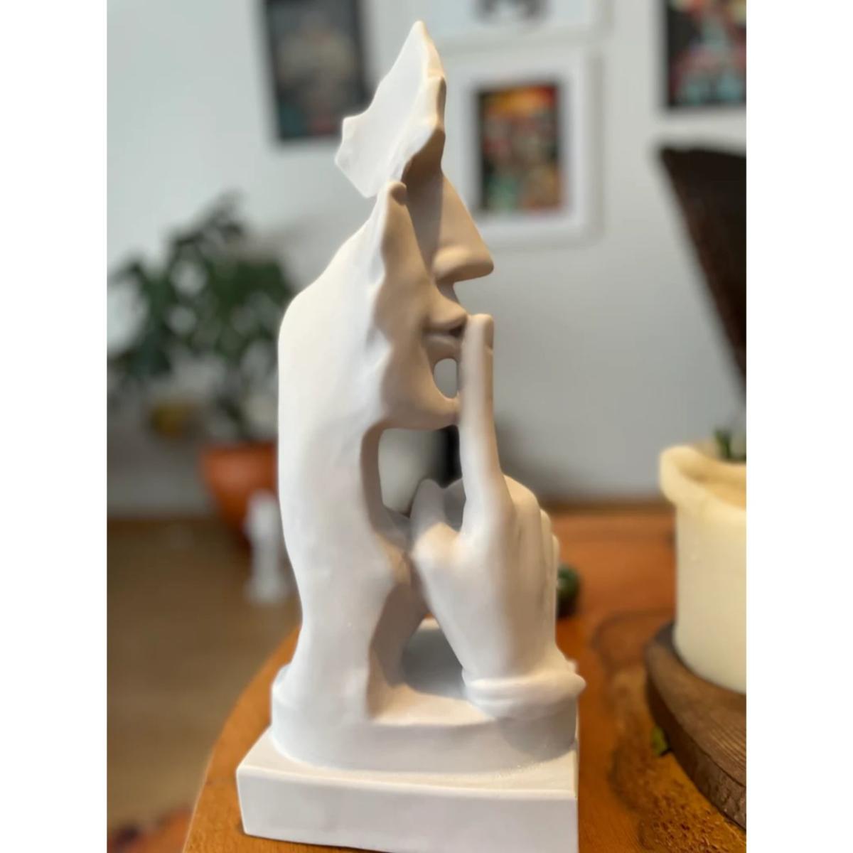 Add a sense of tranquility to your home or garden with this stunning Large Silence Sculpture. Standing at 15 inches tall, this statue of silence is a perfect symbol of peace and serenity. Its white finish and elegant design make it a beautiful addition to any space. Whether displayed indoors or outdoors, this sculpture is sure to create a calming atmosphere that enhances your decor. This Silence Sculpture is not only a beautiful decorative piece but also a thoughtful gift for housewarmings or special occasions. Its minimalist design and serene expression make it a standout feature in any room or garden. Bring a sense of quiet contemplation to your surroundings with this exquisite Large Silence Sculpture.