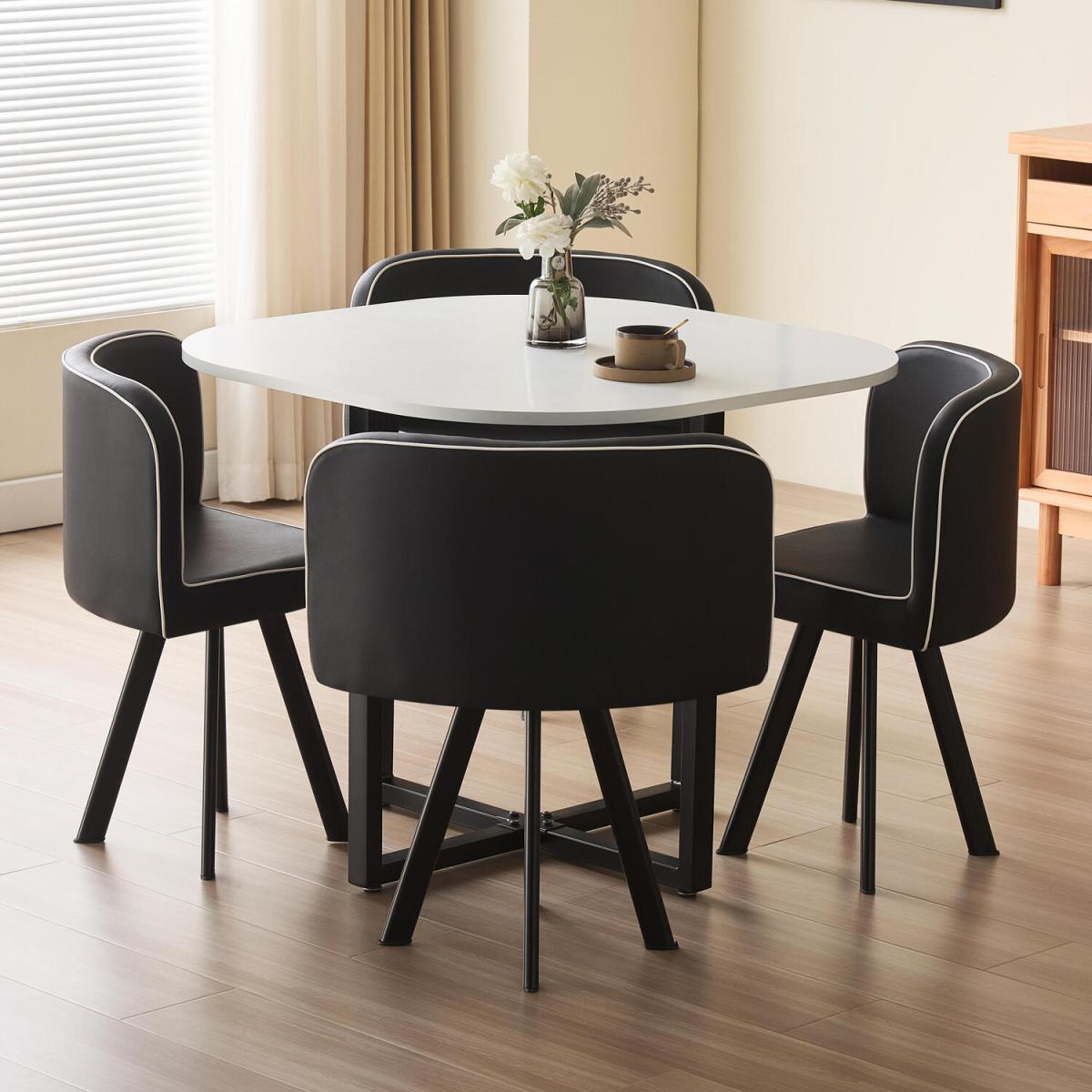 Elevate your dining experience with this stylish and functional dining set. The 90cm white square table offers ample space for enjoying meals with family or friends. Crafted with a sleek and modern design, it seamlessly blends with various interior styles. Complementing the table are four chairs available in three sophisticated colour options: black, white, or grey. These chairs boast a comfortable and supportive design, ensuring a pleasant seating experience. With its contemporary aesthetic and practical functionality, this dining set is an excellent addition to any home, providing a chic and inviting space for shared moments around the table.